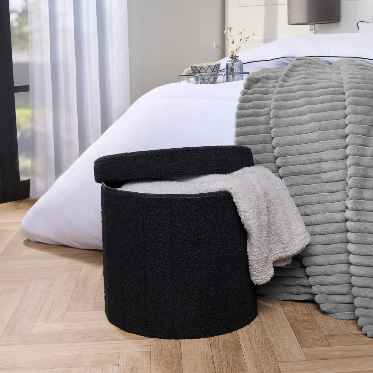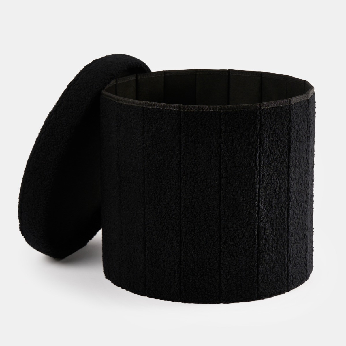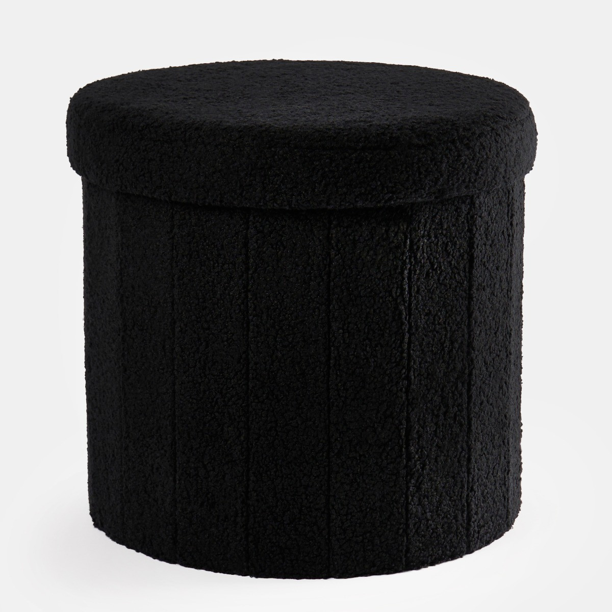 OHS Bouclé Foldable Round Storage Ottoman - Black