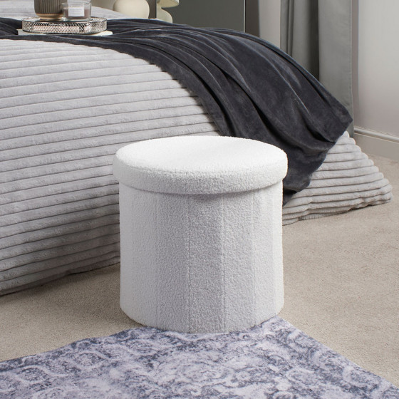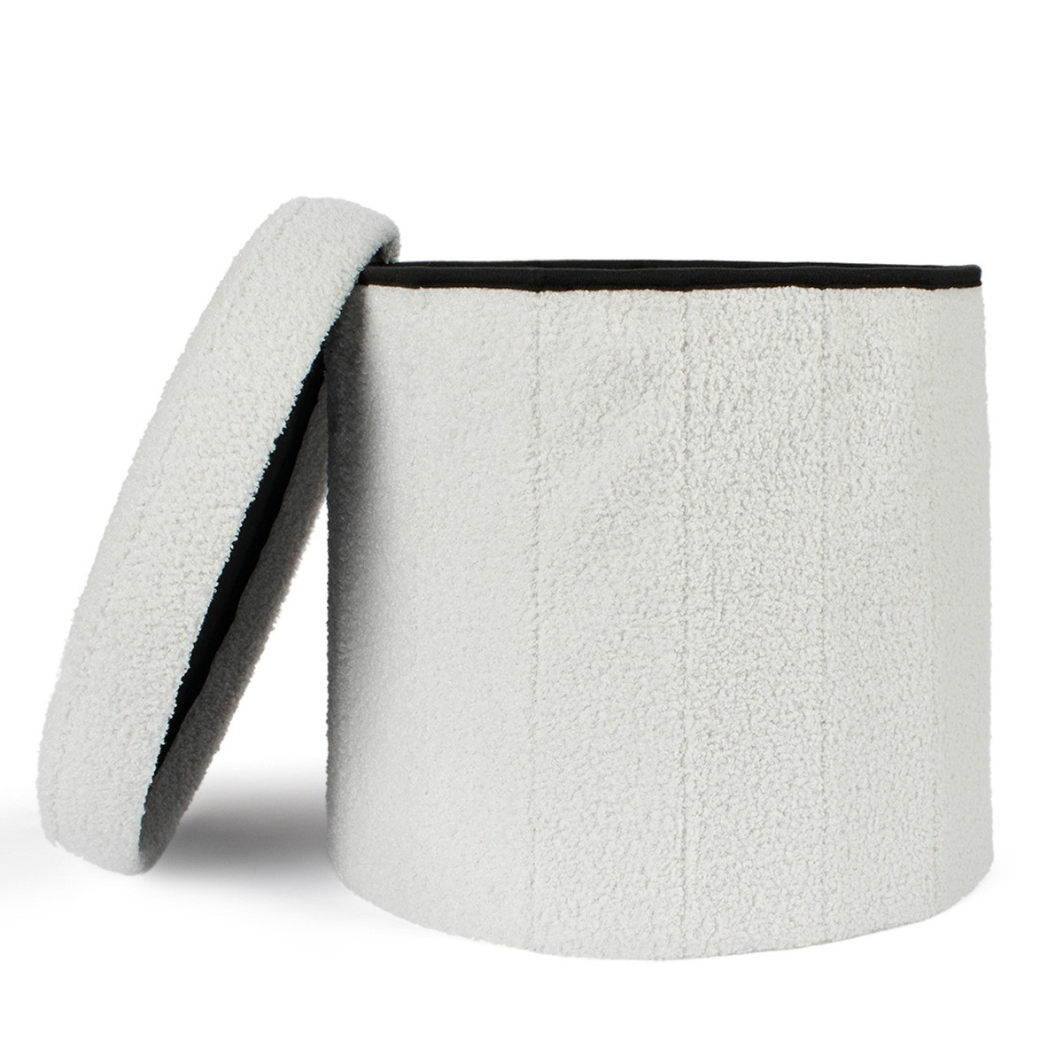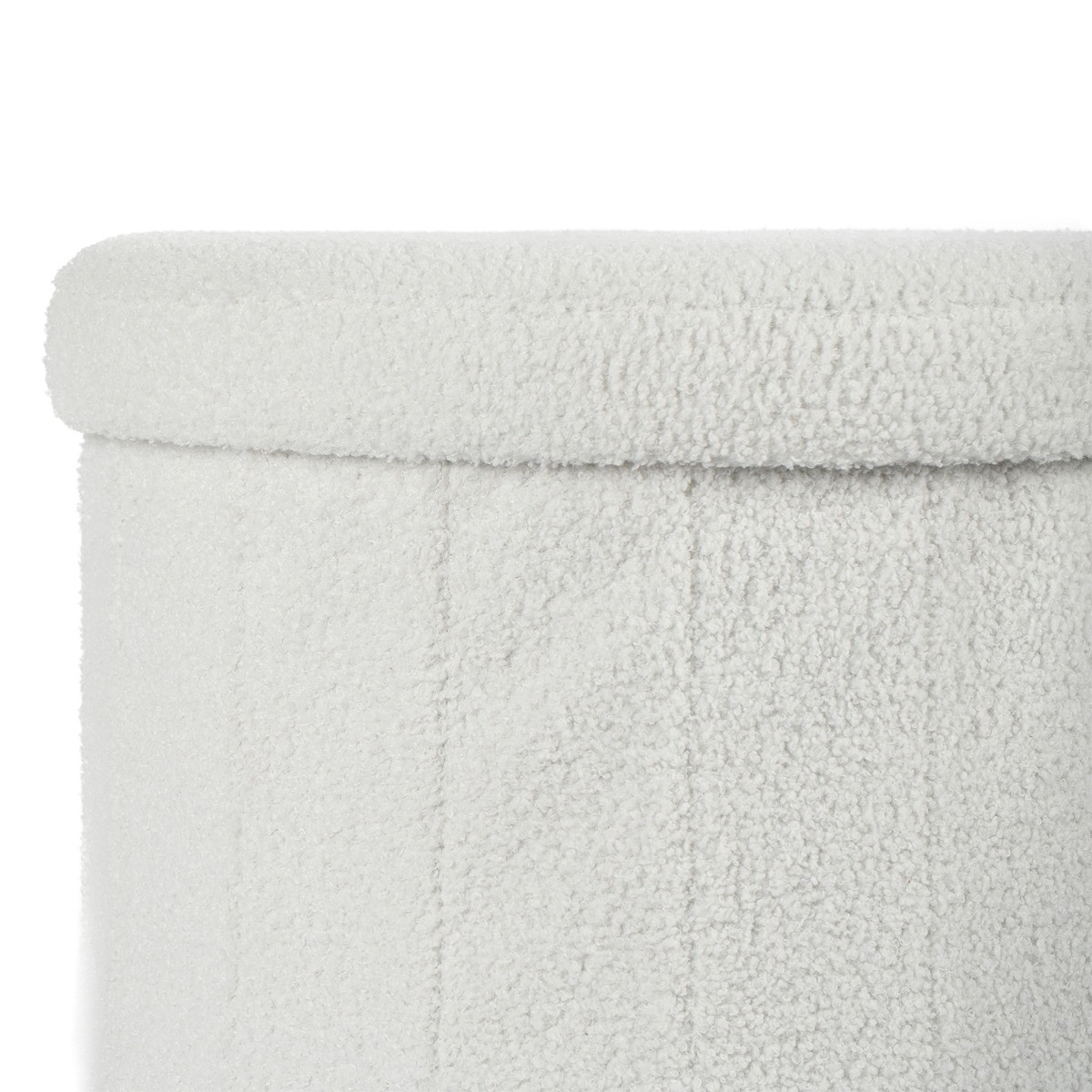 OHS Bouclé Foldable Round Storage Ottoman - White
