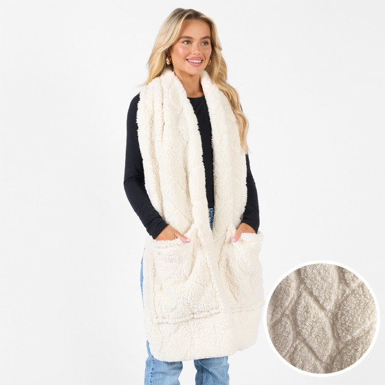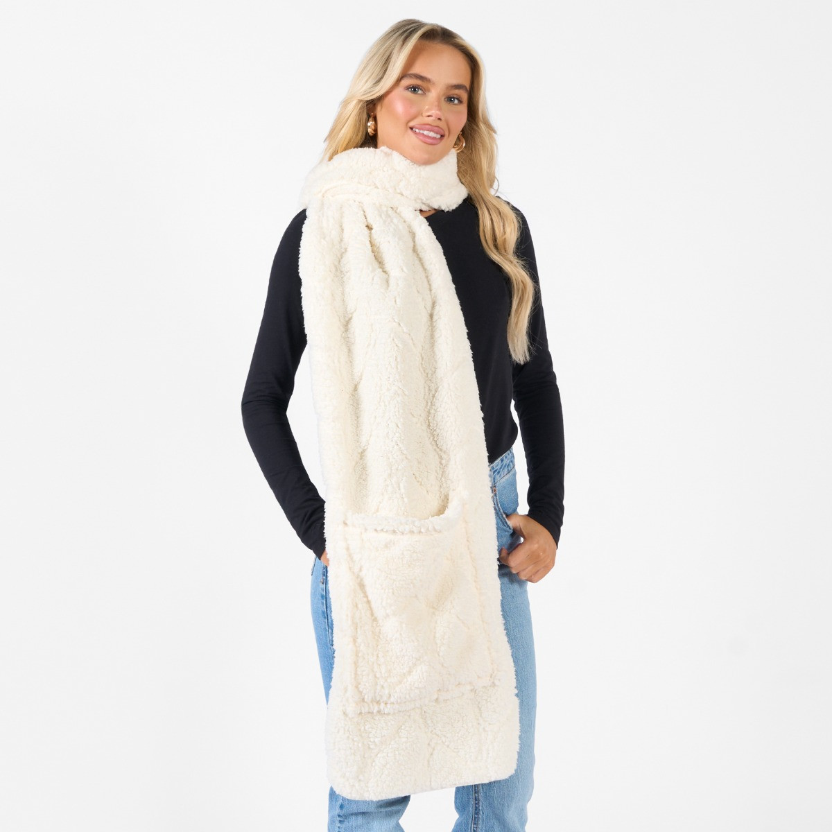 Elevate your winter wardrobe with the OHS Braided Fleece Pocket Scarf in Cream, a stylish and practical accessory designed to keep you warm and cozy in elegant fashion. Made from ultra-soft braided fleece, this scarf not only provides luxurious warmth but also features convenient pockets, perfect for keeping your hands snug or storing small essentials. The cream color adds a touch of sophistication, making it versatile enough to complement any outfit. Whether you’re out for a walk or simply running errands, this scarf combines functionality with a timeless look, making it a must-have for the chilly season.