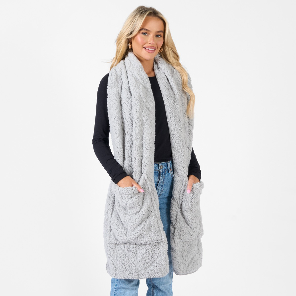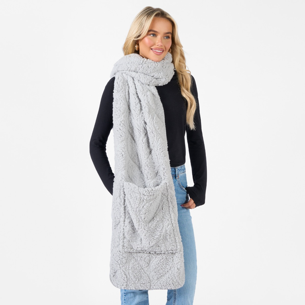 Elevate your winter wardrobe with the OHS Braided Fleece Pocket Scarf in Cream, a stylish and practical accessory designed to keep you warm and cozy in elegant fashion. Made from ultra-soft braided fleece, this scarf not only provides luxurious warmth but also features convenient pockets, perfect for keeping your hands snug or storing small essentials. The cream color adds a touch of sophistication, making it versatile enough to complement any outfit. Whether you’re out for a walk or simply running errands, this scarf combines functionality with a timeless look, making it a must-have for the chilly season.