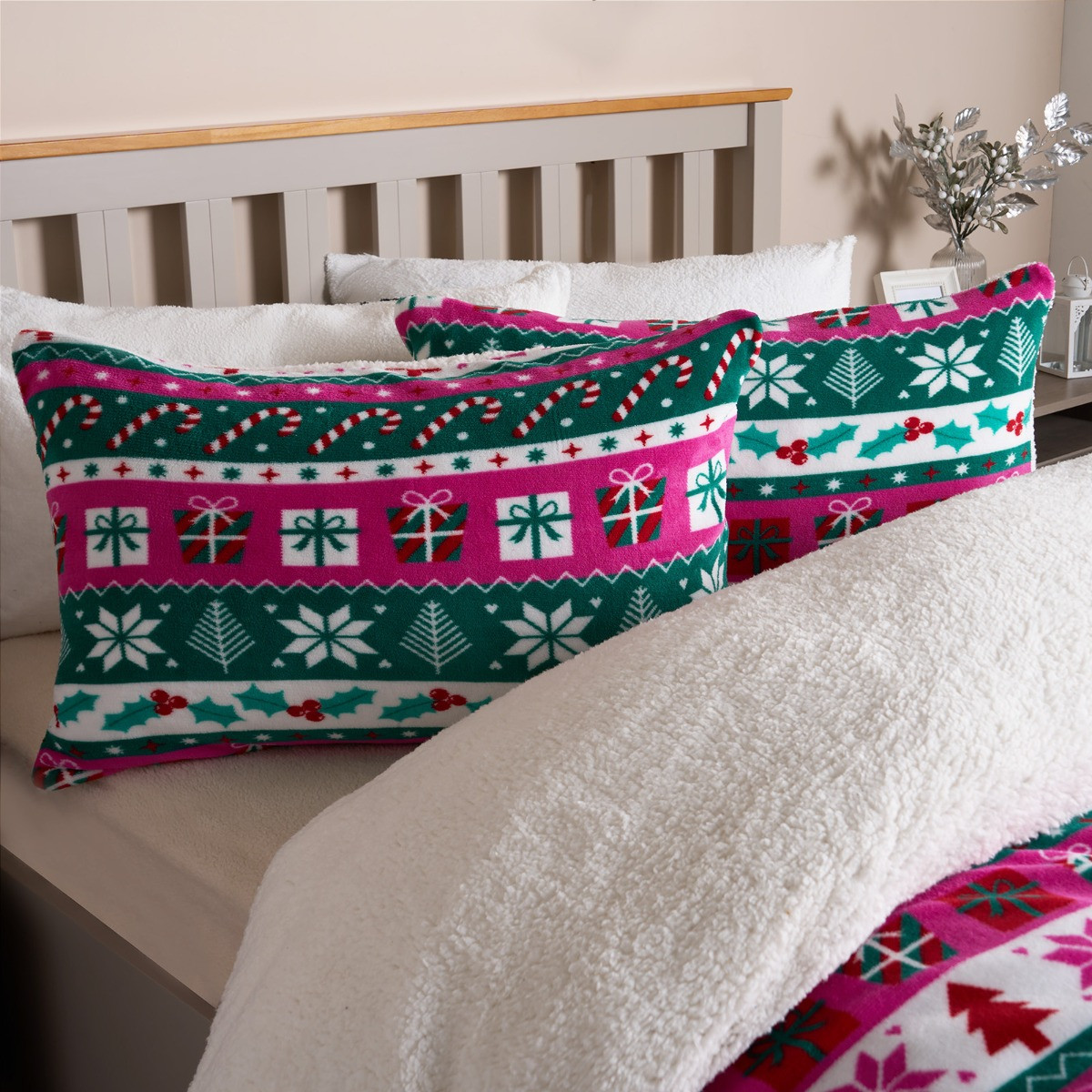 Craft an equal parts cosy and festive atmosphere with the Bright Nordic Fleece Duvet Set from OHS - a vibrant bedding option perfect for adding a cheerful touch to your home during the winter and holiday season. Decorated with classic christmas motifs, such as parcels and Christmas trees, in lively and eye-catching colours, this set brings the holiday spirit right into your room. Made from soft-touch and warming fleece, it is designed to keep you cosy and warm, regardless of what's going on outside. This duvet set is a must-have for anyone looking to enhance their home with festive decor while staying comfortable and snug all winter long.