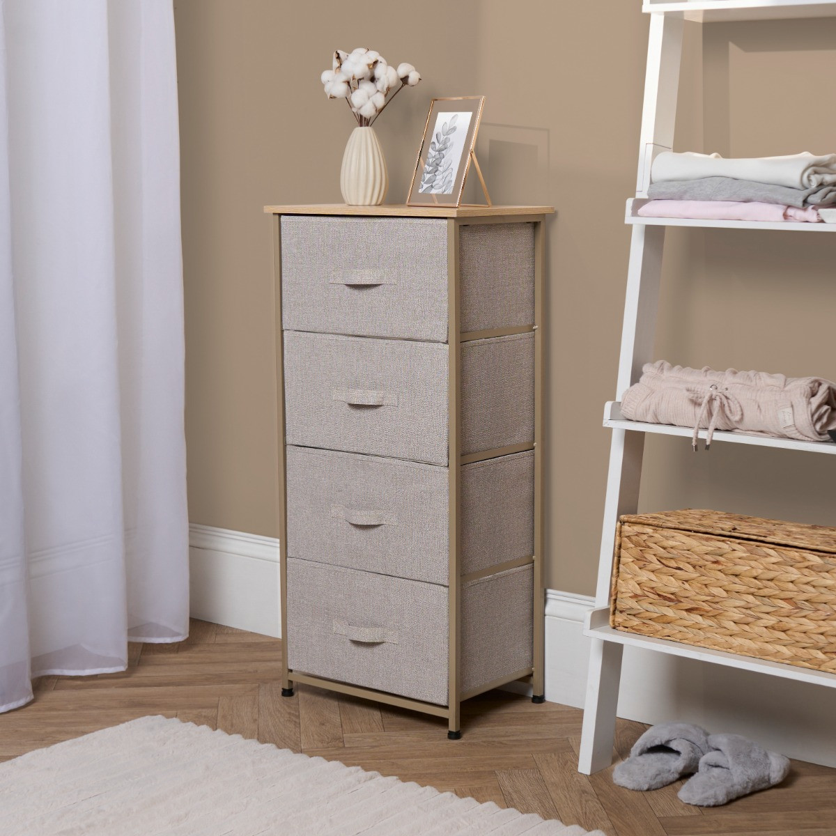 OHS Brooklyn 4 Drawer Fabric Cabinet - Beige