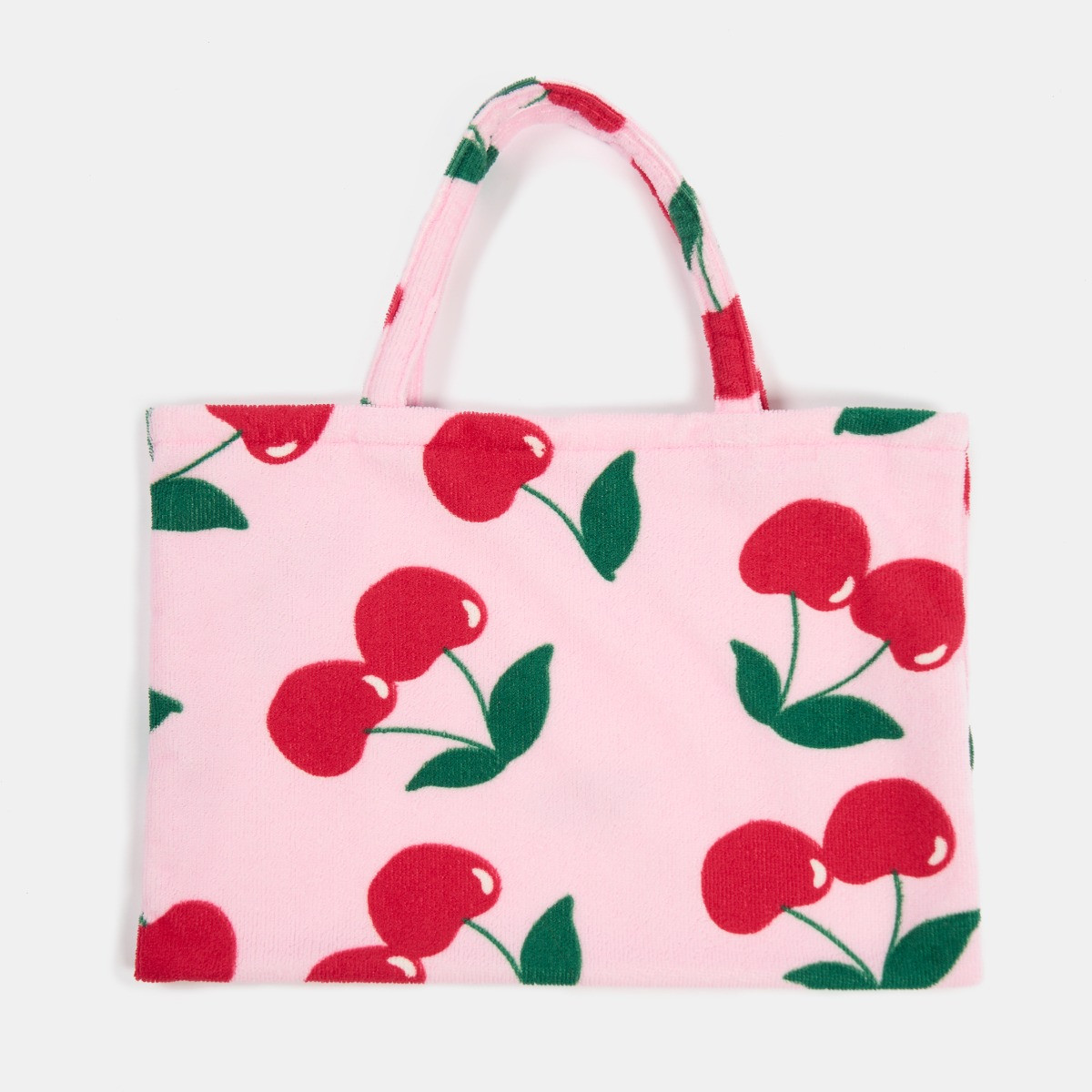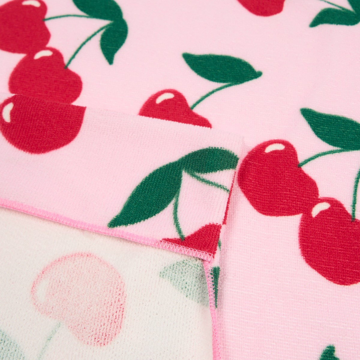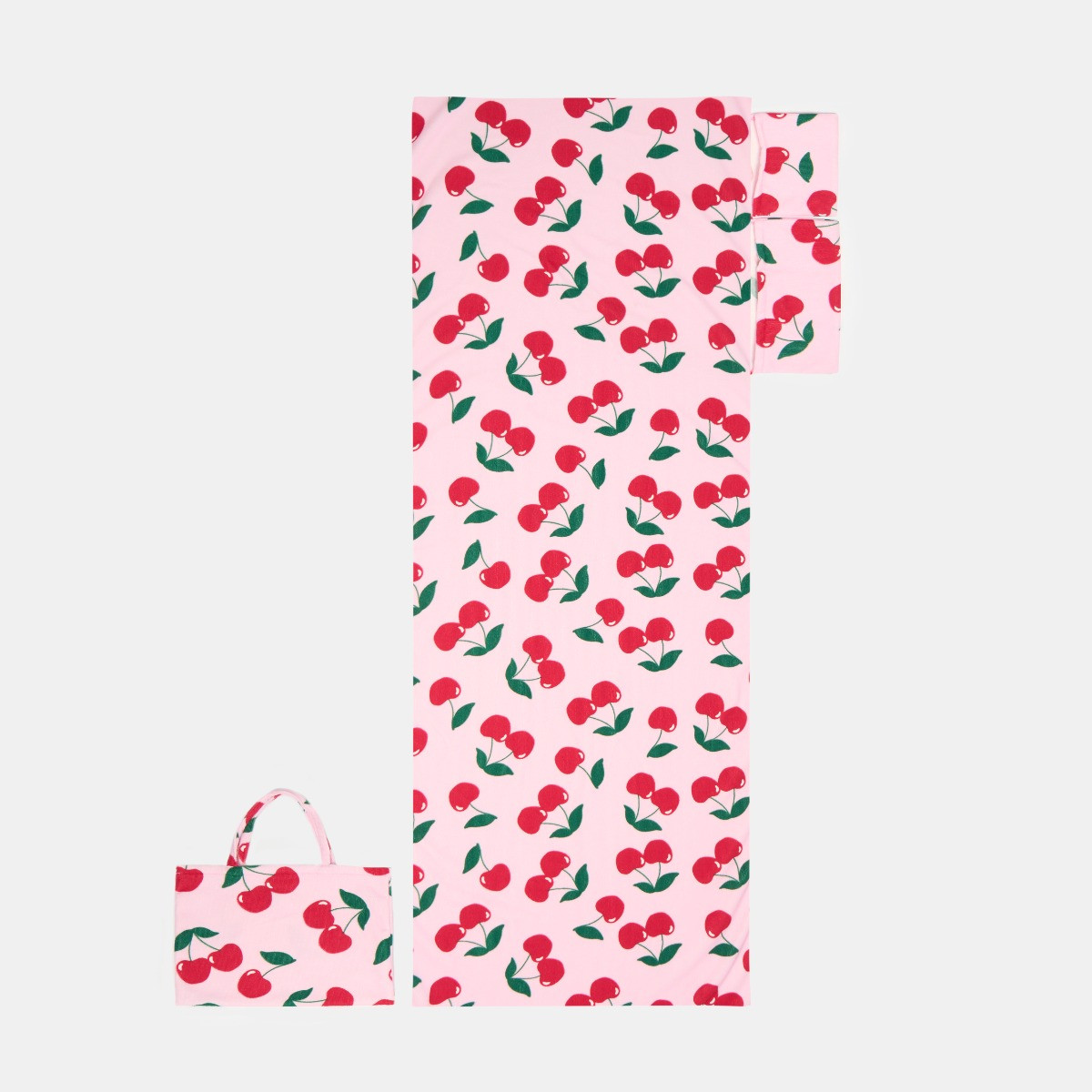 OHS Cherry Print Beach Towel in a Bag - Pink