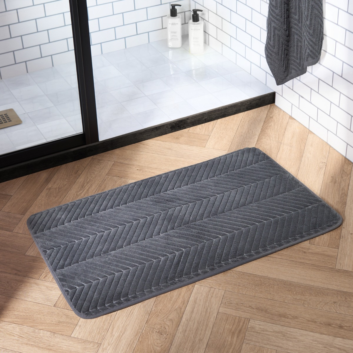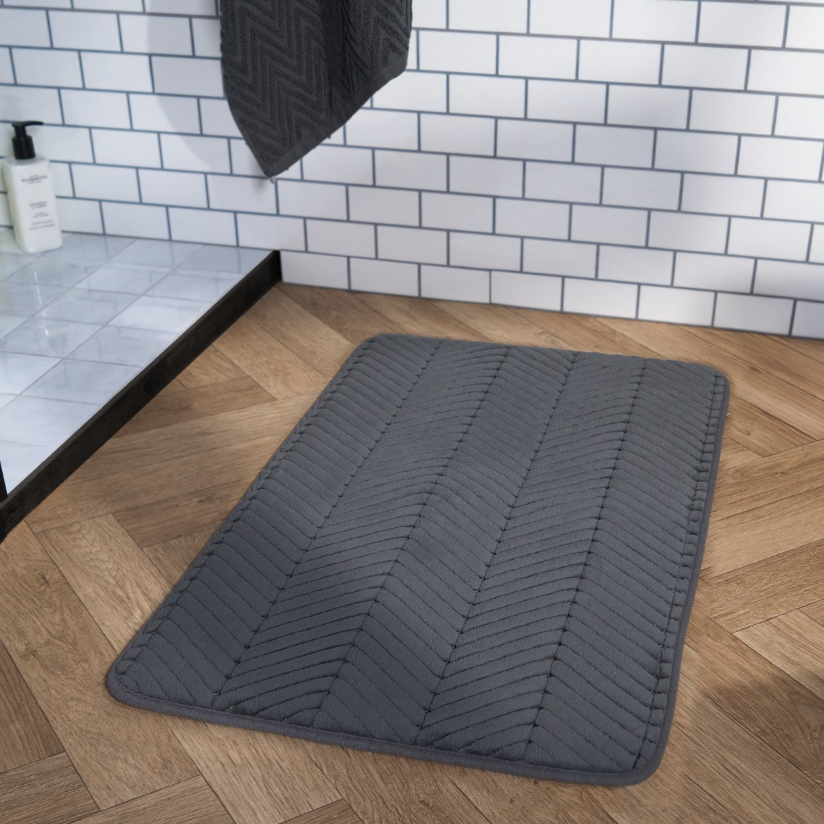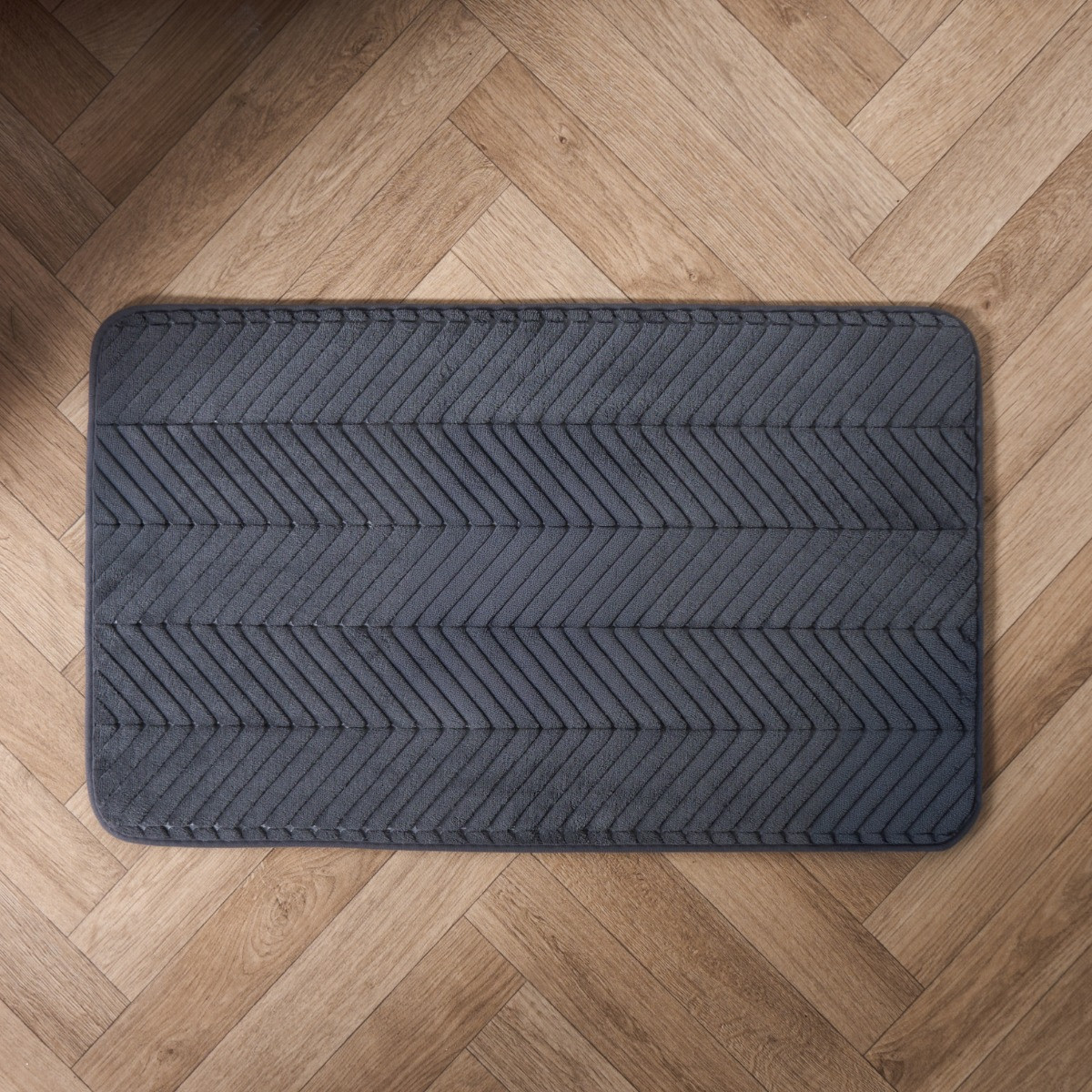 The OHS Chevron Embossed Plush Foam Bath Mat combines contemporary design with ultimate comfort. Featuring a chic chevron embossed pattern, this mat adds a stylish touch to any bathroom decor. Made from plush foam, it offers exceptional cushioning and support for your feet after a refreshing bath or shower. The charcoal colour provides a sleek, modern look, while the pvc non-slip backing ensures safety. Soft, absorbent, and quick-drying, this bath mat is both functional and fashionable, perfect for enhancing your bathroom experience.