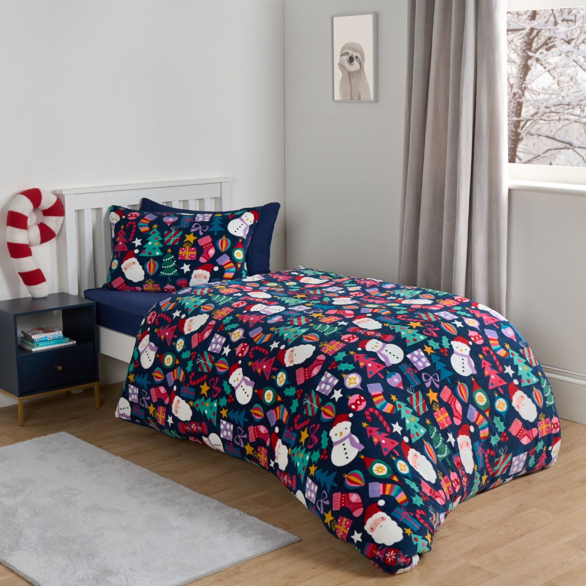 OHS Christmas Festive Fun Fleece Duvet Set, Navy - Double
