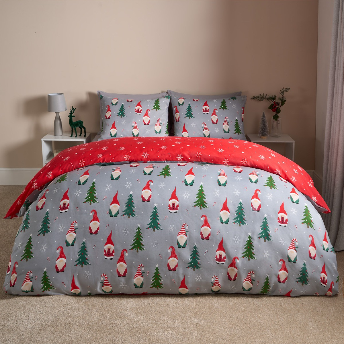 OHS Christmas Gonk Reversible Duvet Cover Set - Grey