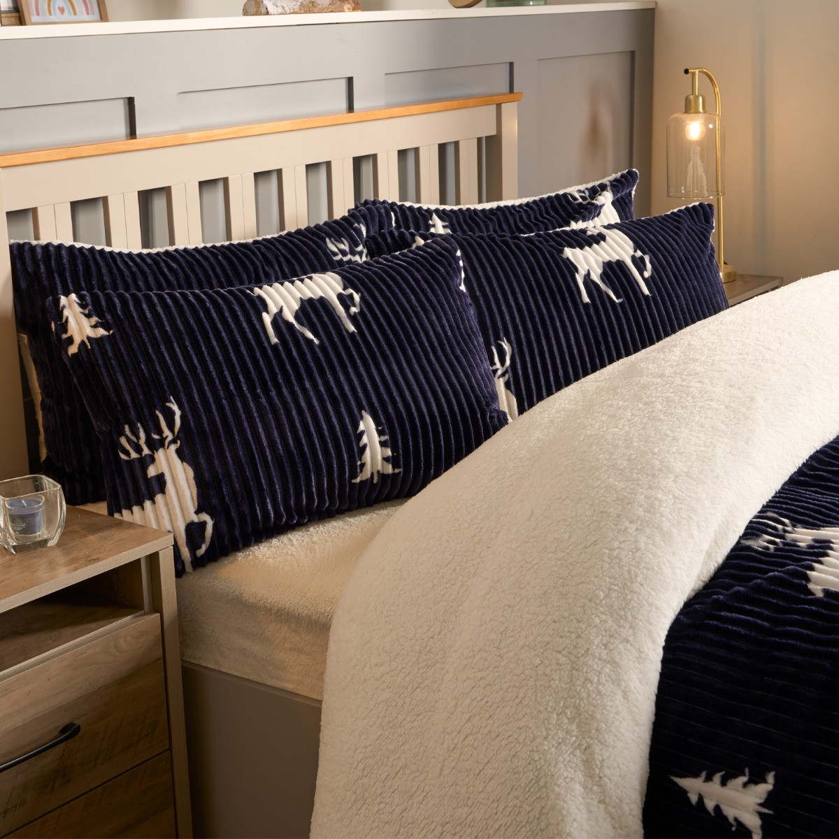 OHS Cosy Stag Ribbed Fleece Duvet Set, Navy - King