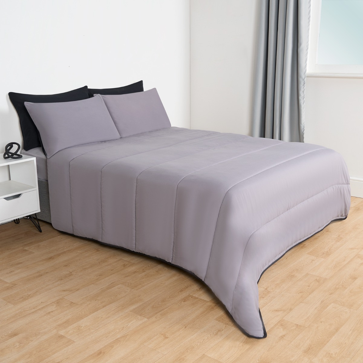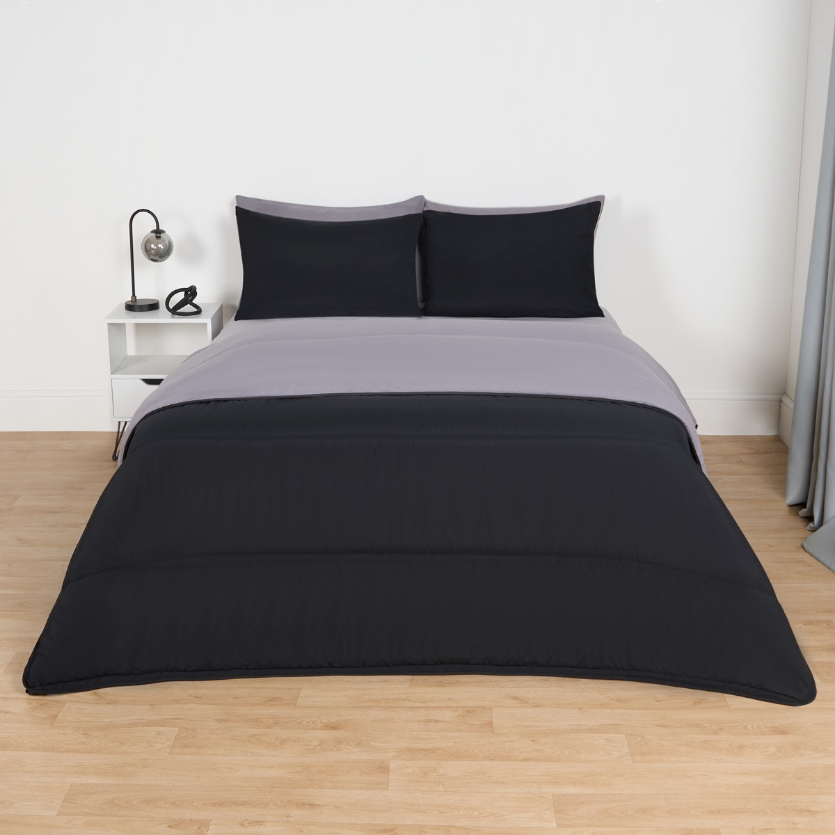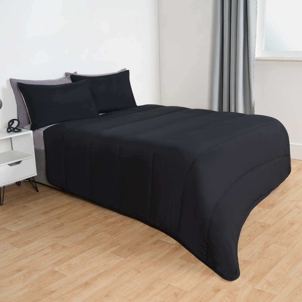 OHS Coverless 10.5 Tog Reversible Duvet & Pillowcase, Black/Grey - Single