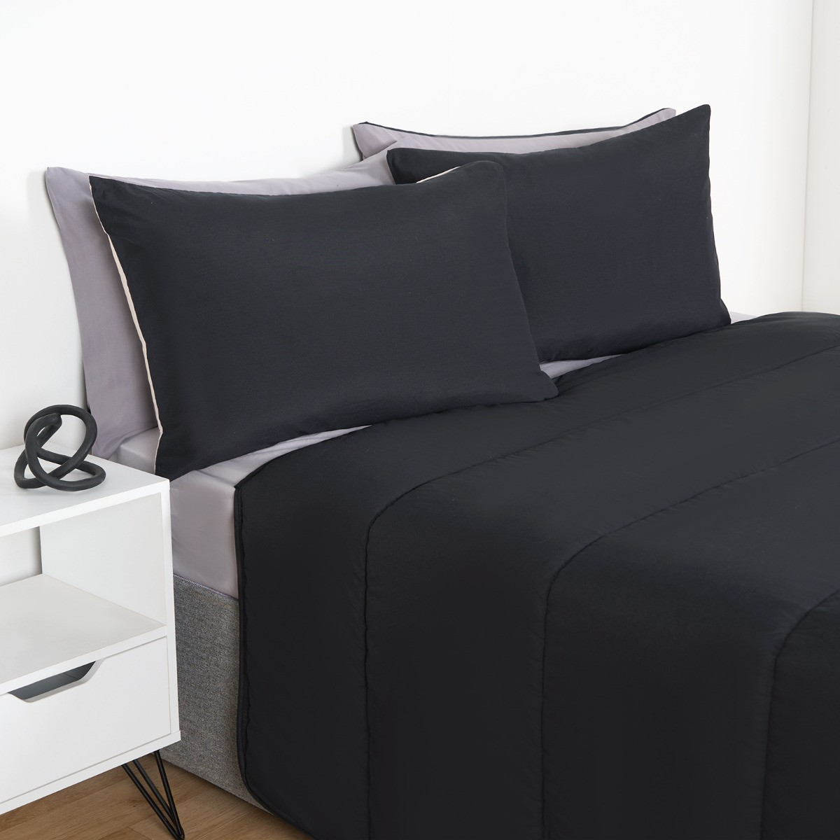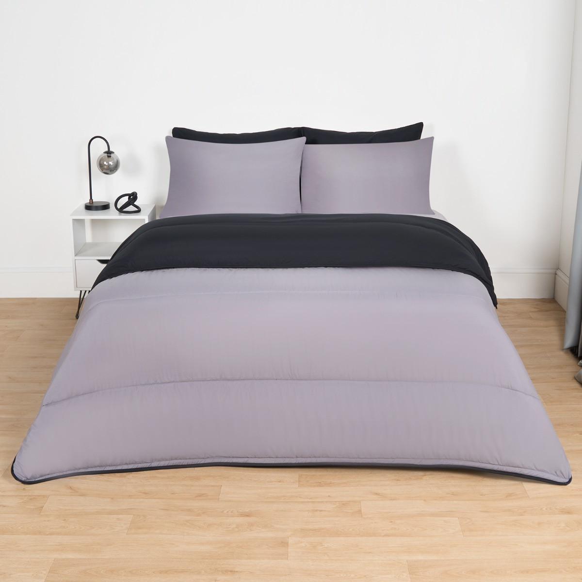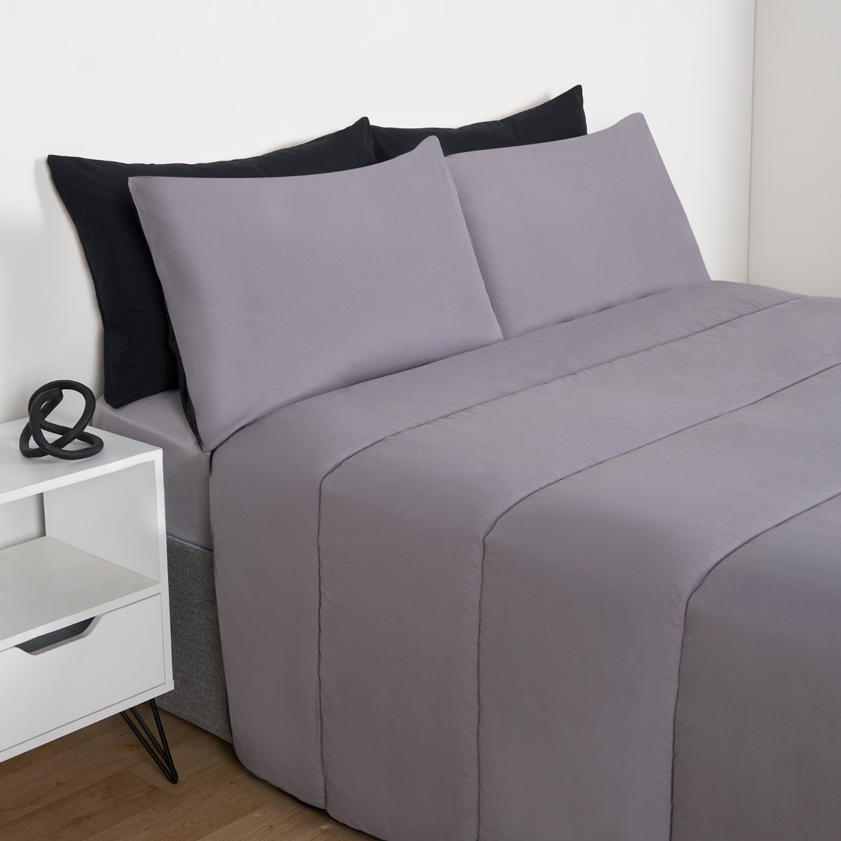 OHS Coverless 10.5 Tog Reversible Duvet & Pillowcase, Black/Grey - Single