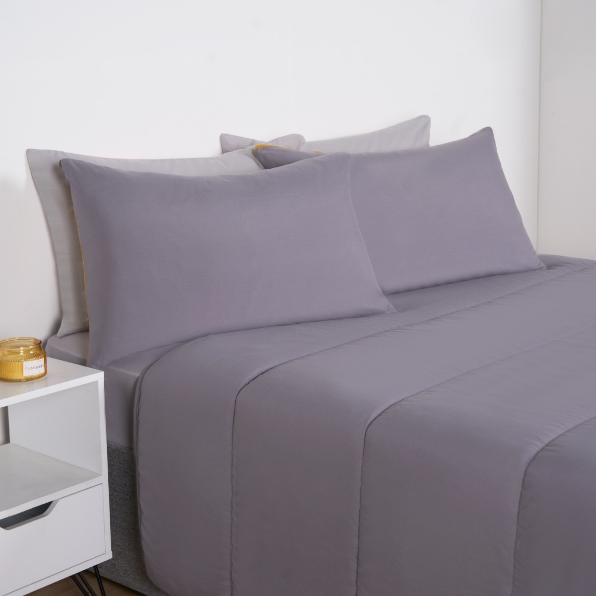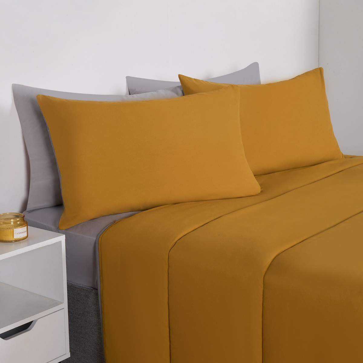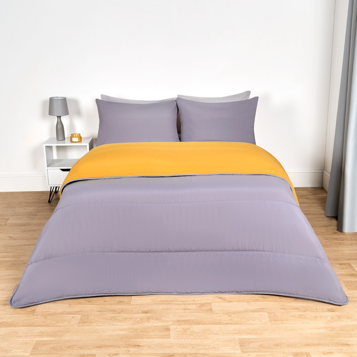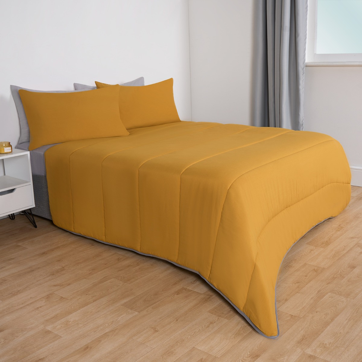 OHS Coverless 10.5 Tog Reversible Duvet & Pillowcase, Grey/Ochre - King