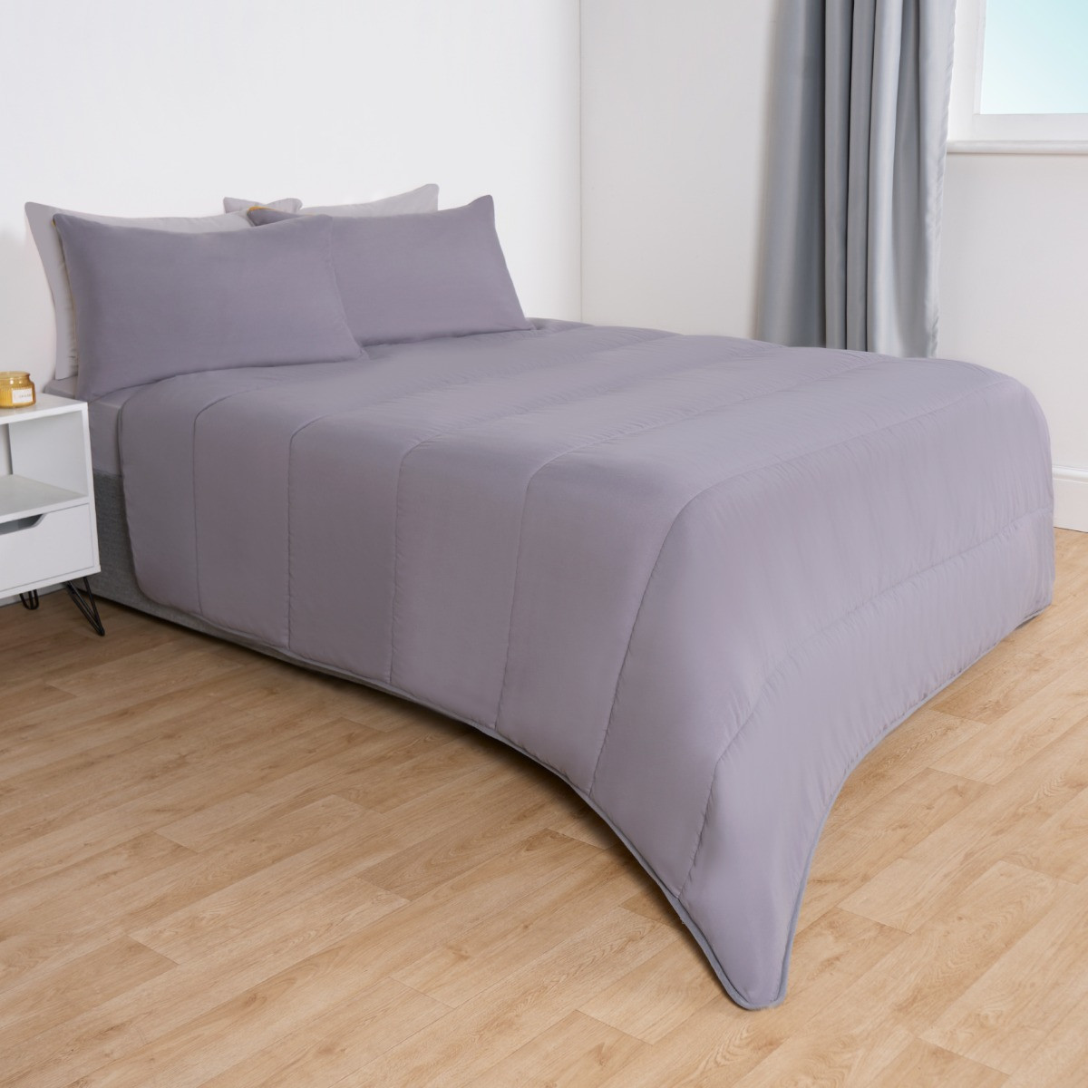 The OHS Coverless 10.5 Tog Reversible Duvet & Pillowcase set offers both practicality and style for your bedroom. With its innovative coverless design, this set allows you to easily switch up your bedding for a change of style or season.Featuring complementary colours on each side, the reversible duvet and pillowcase(s) ensures that your bedroom remains stylish and coordinated. The absence of a traditional cover simplifies the process of changing your bedding, making it a convenient option for those who love to refresh their space regularly. The 10.5 Tog rating provides a versatile warmth level suitable for various climates and preferences.Embrace the flexibility of design and comfort with the OHS Coverless 10.5 Tog Reversible Duvet & Pillowcase set, bringing a touch of practical elegance to your bedroom.