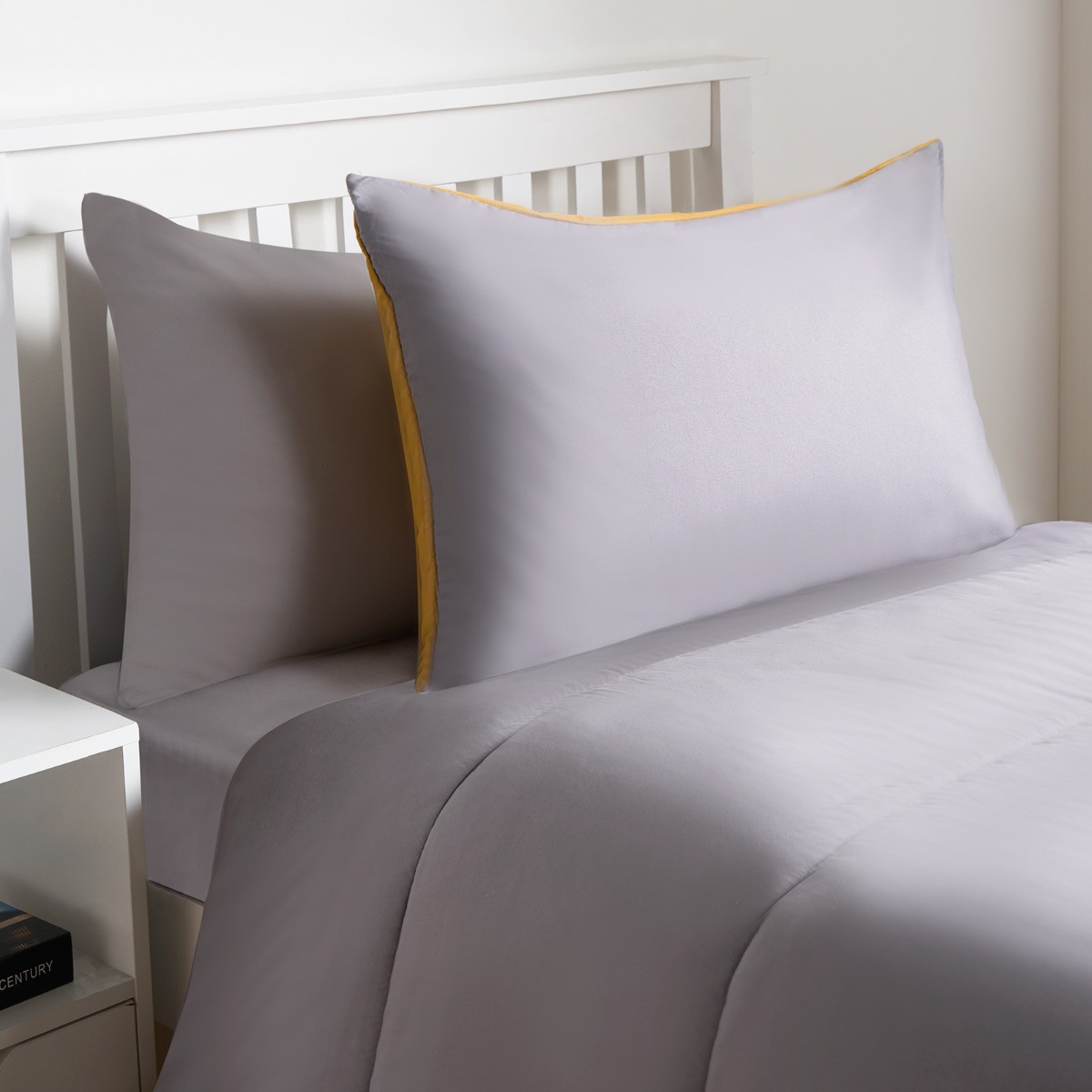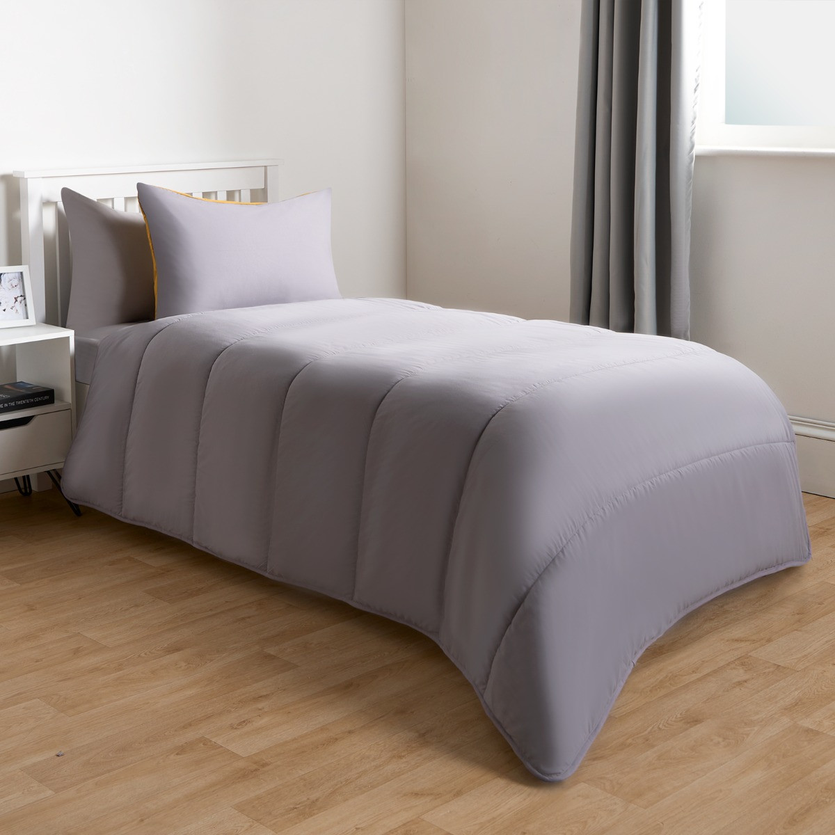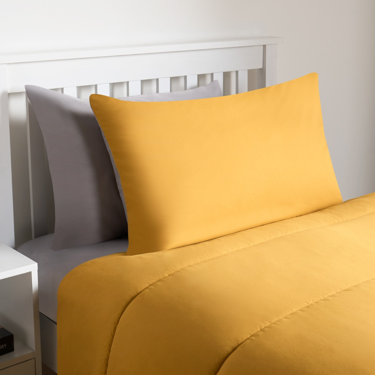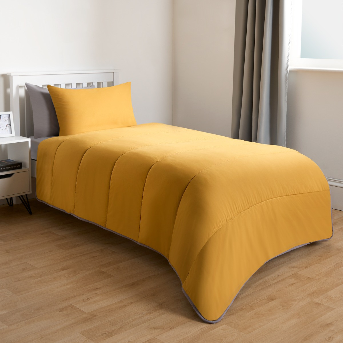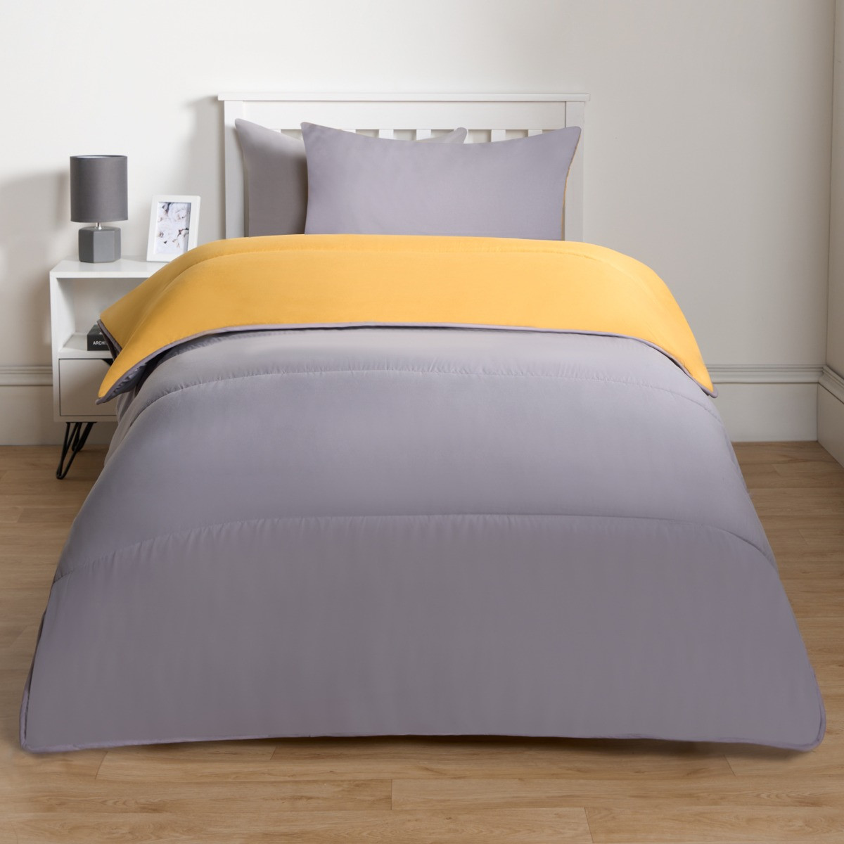 OHS Coverless 10.5 Tog Reversible Duvet & Pillowcase, Grey/Ochre - Single