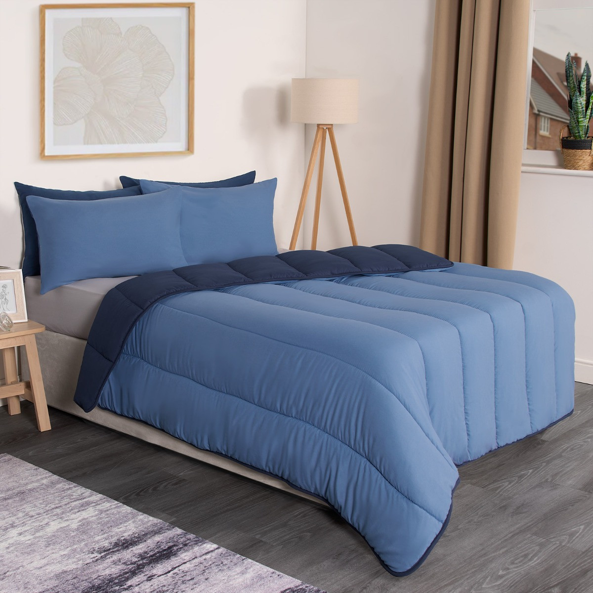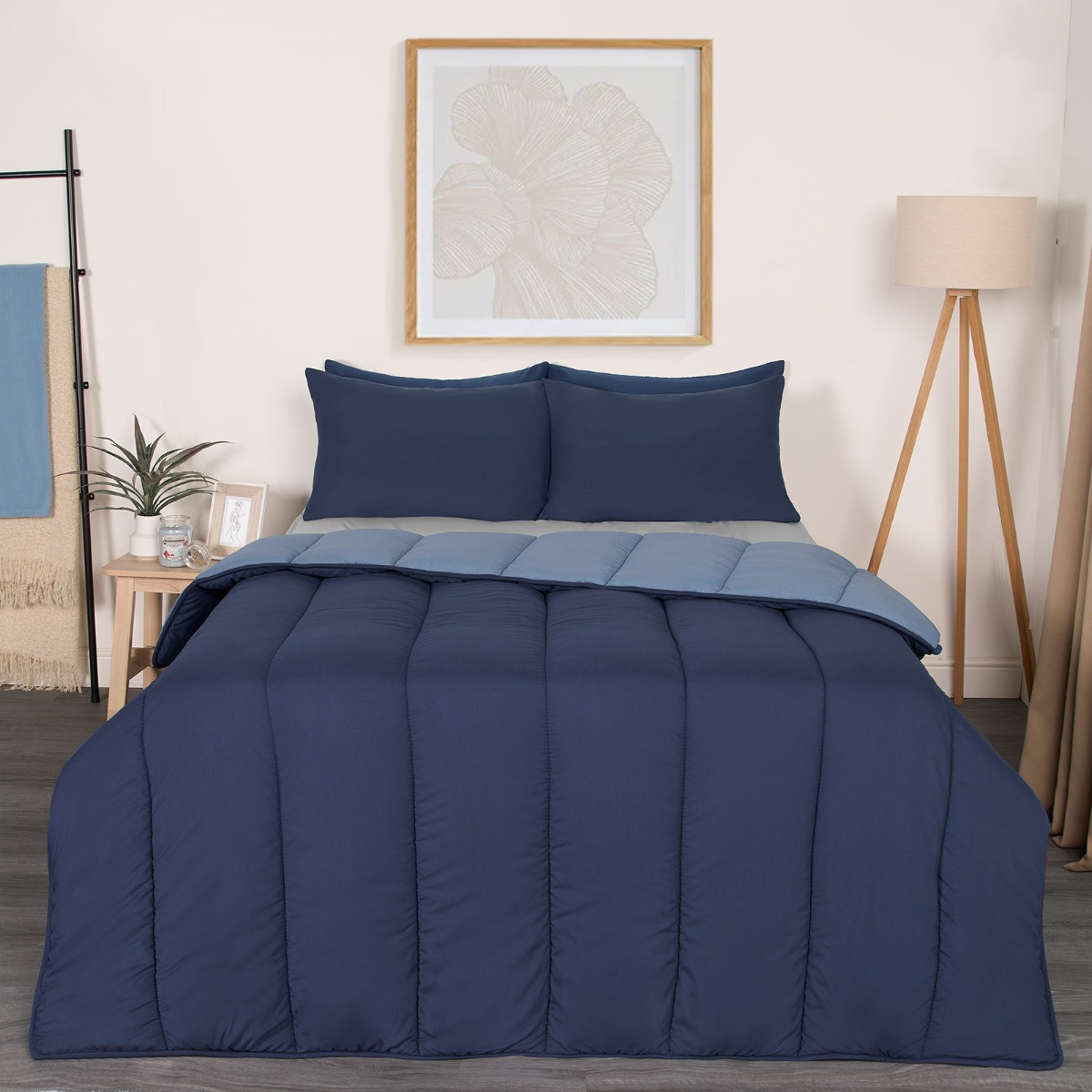 OHS Coverless 10.5 Tog Reversible Duvet & Pillowcase, Navy/Blue - Single