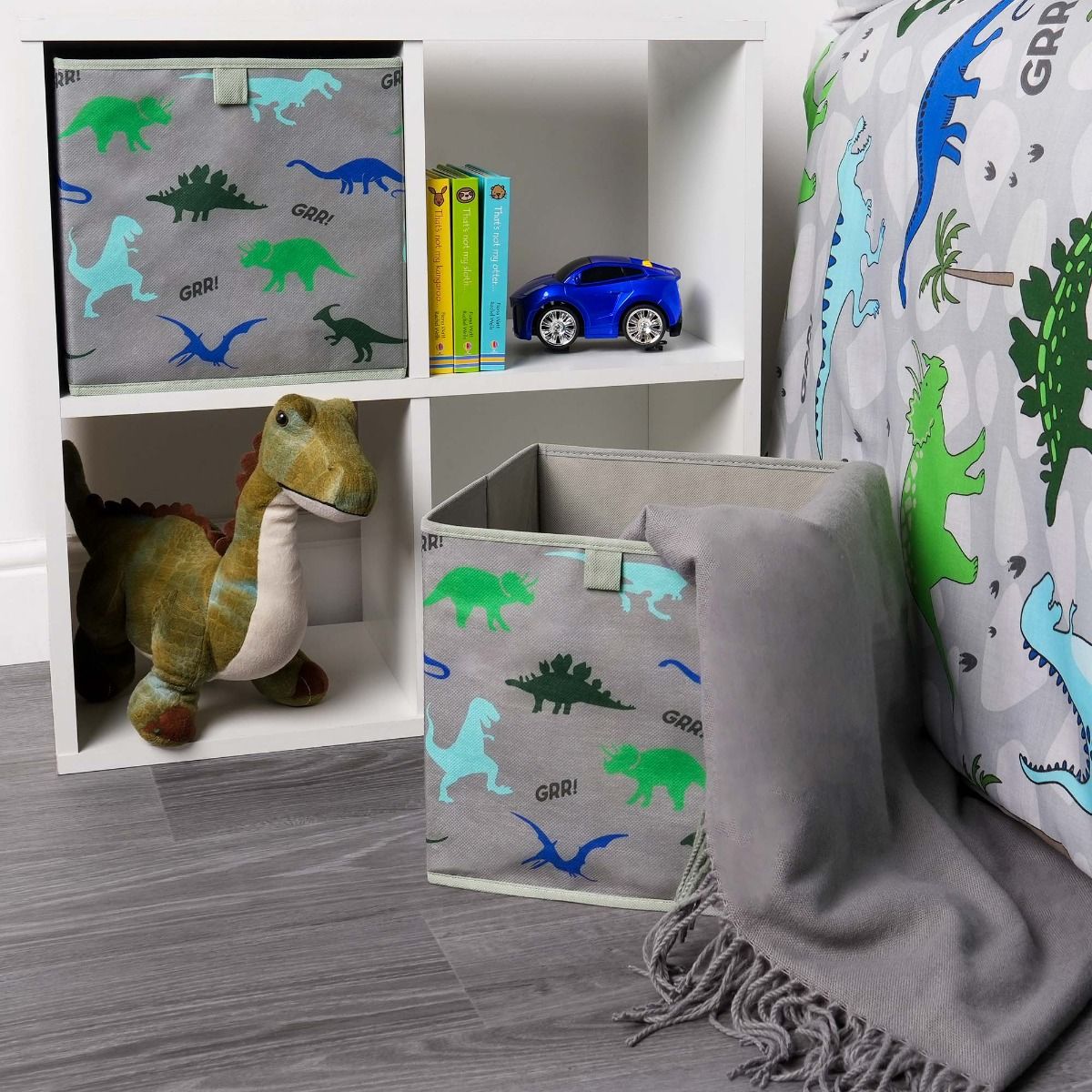 Compact and foldable, keep you rooms tidy with our Dinosaur printed storage box, which can be used to store loose items, includng toys and games. These lightweight storage solutions are a perfect way to achieve a clean look with your items. Due to the cube design they can be used under beds and in most cube shelving units, allowing for a clean finished look.