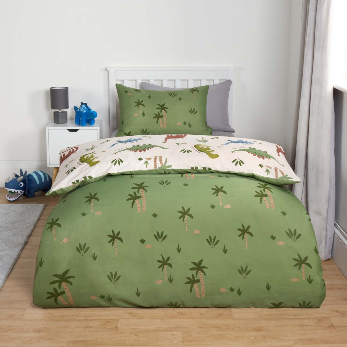 OHS Dino Reversible Duvet Cover Set - Cream/Green