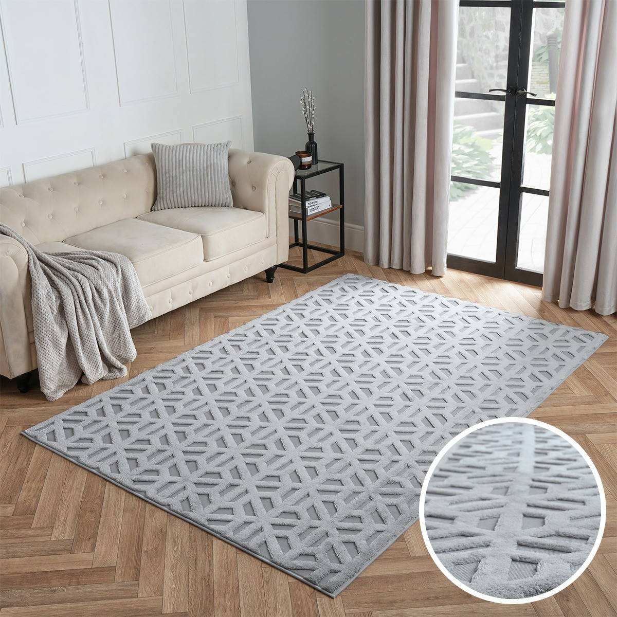 Introducing the OHS Embossed Tufted Geometric Rug in Grey, a sleek and sophisticated addition to your home decor. Featuring an intricate embossed geometric pattern, this rug offers a visually striking design with added texture and depth. The refined grey colour enhances its modern appeal, making it a versatile choice for elevating any room. Perfect for adding a touch of contemporary elegance, the OHS Embossed Tufted Geometric Rug combines style with comfort, creating a chic focal point in your living space.