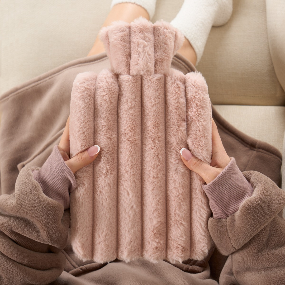 OHS Faux Fur Bubble Rib Hot Water Bottle - Blush
