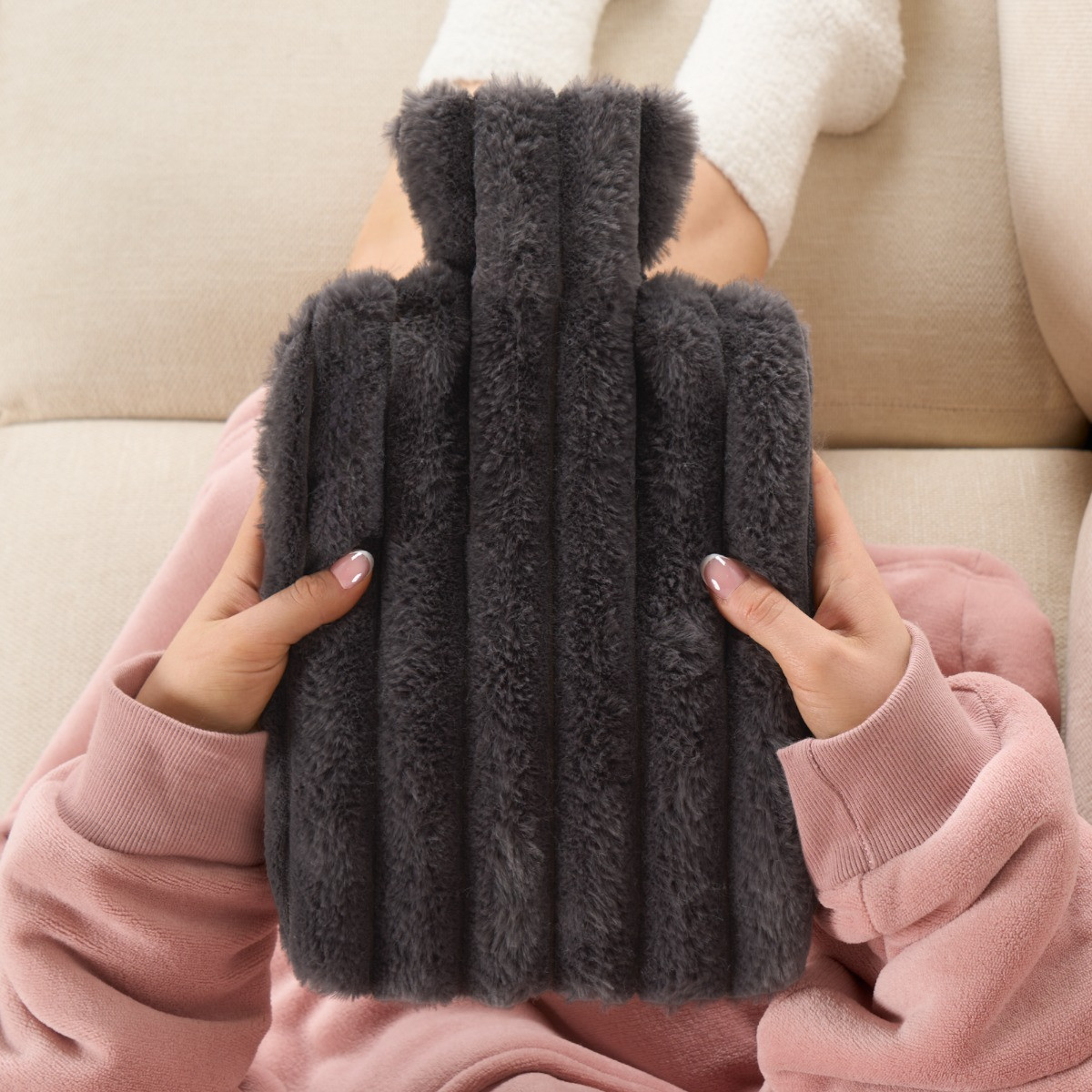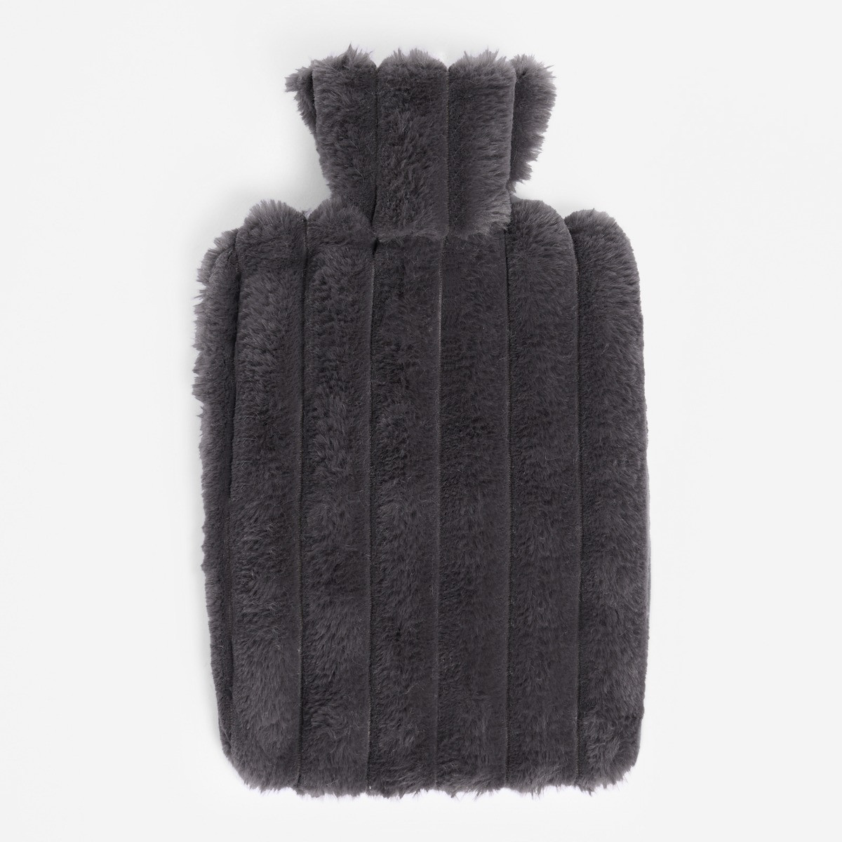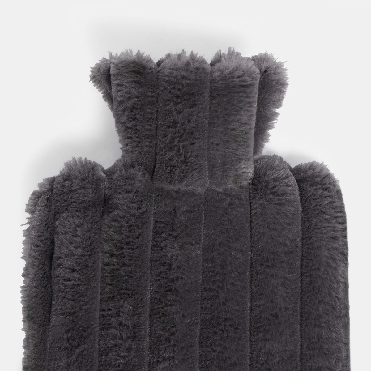 OHS Faux Fur Bubble Rib Hot Water Bottle - Charcoal
