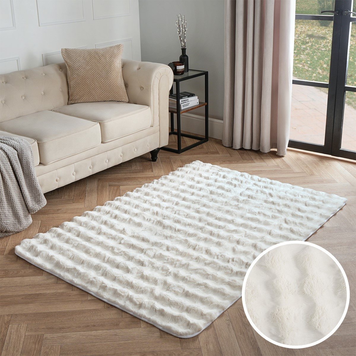 OHS Faux Fur Bubble Rug, Cream - 80 x 150cm