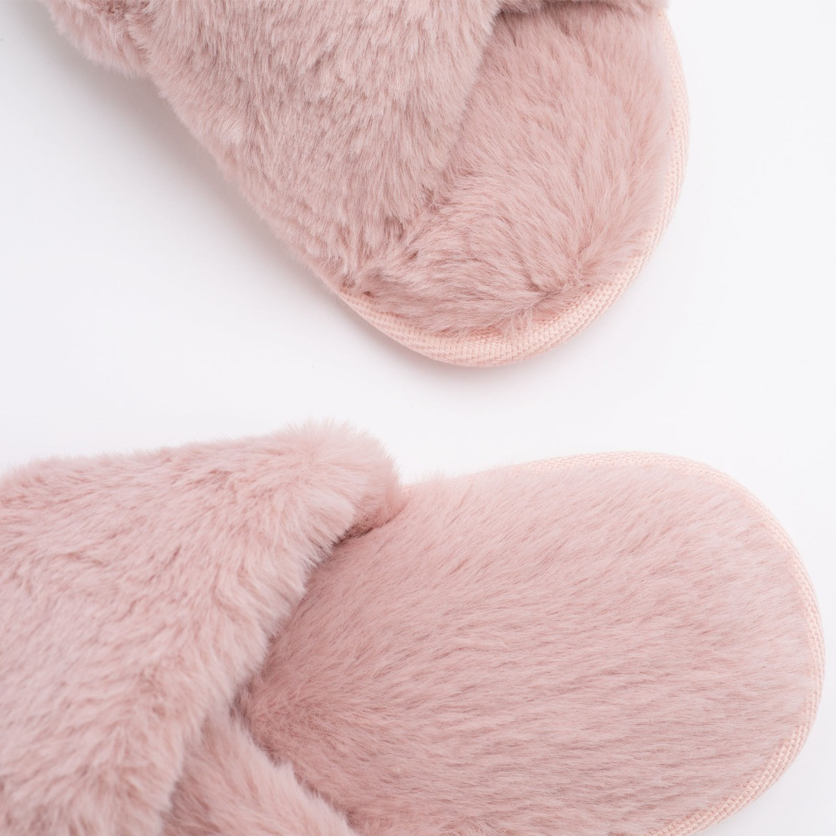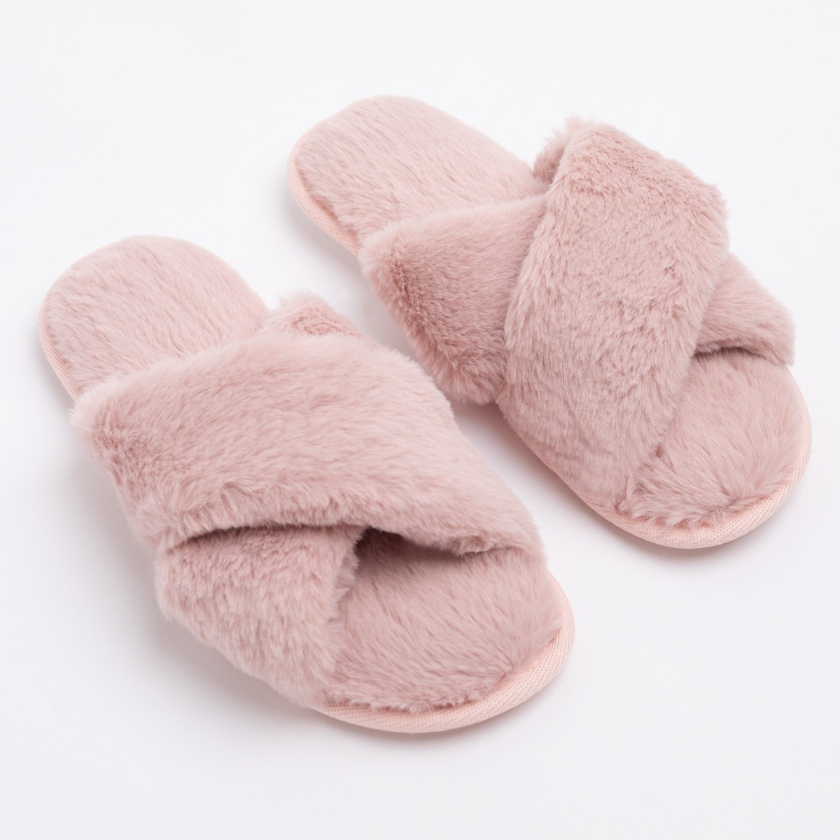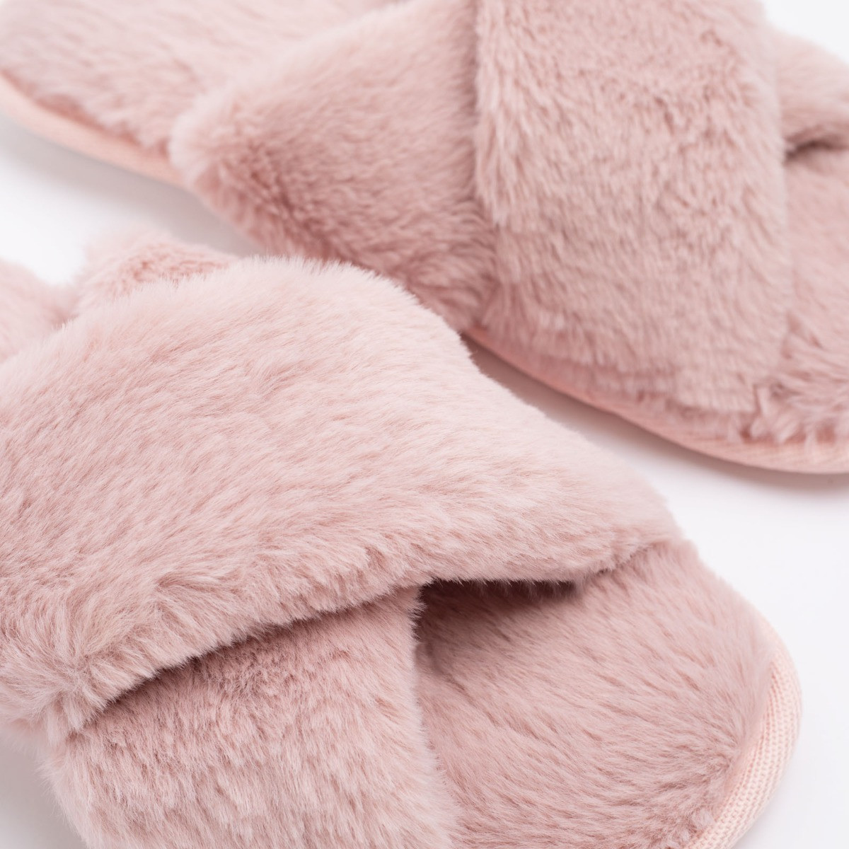 Comfy, stylish and snuggly, our faux fur slippers are soft and cosy, making them perfect for lounging around or even for the ultimate working from home look. This cosy pair of slider style slipper has a cross over strap for a snug fit, both sole and strap are a plush faux fur material. They have been crafted with a rubber sole for durability and comfort.