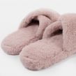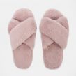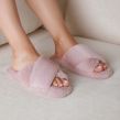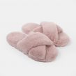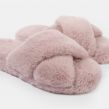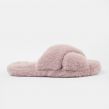 OHS Faux Fur Platform Cross Strap Slippers - Blush
