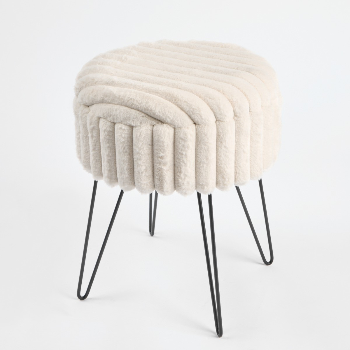 OHS Faux Fur Ribbed Storage Hairpin Stool - Cream
