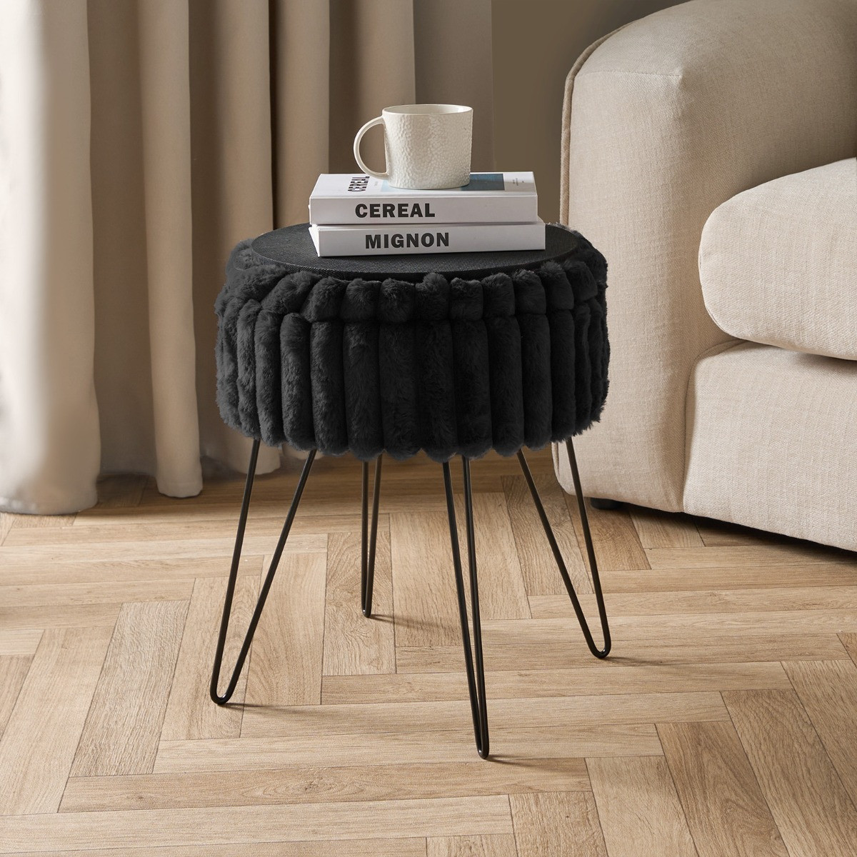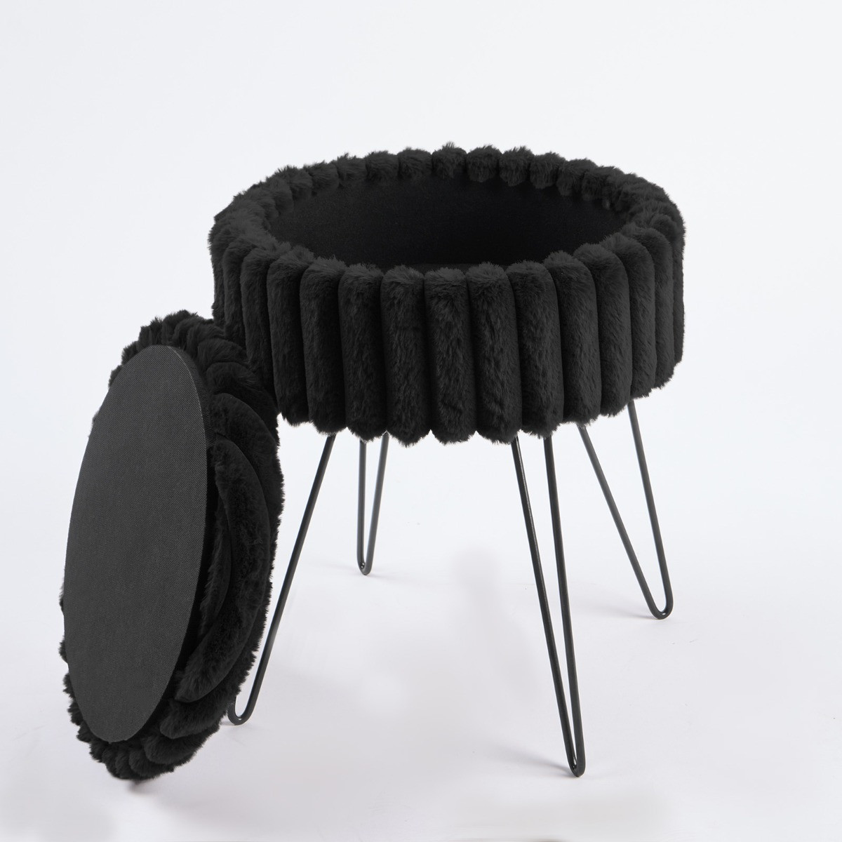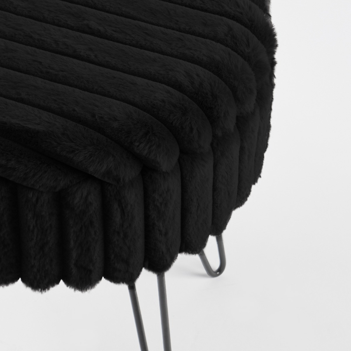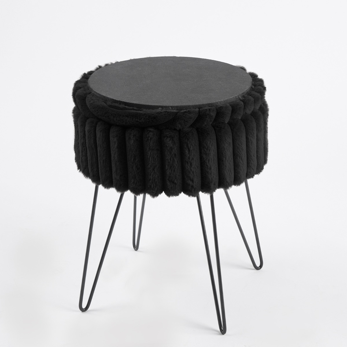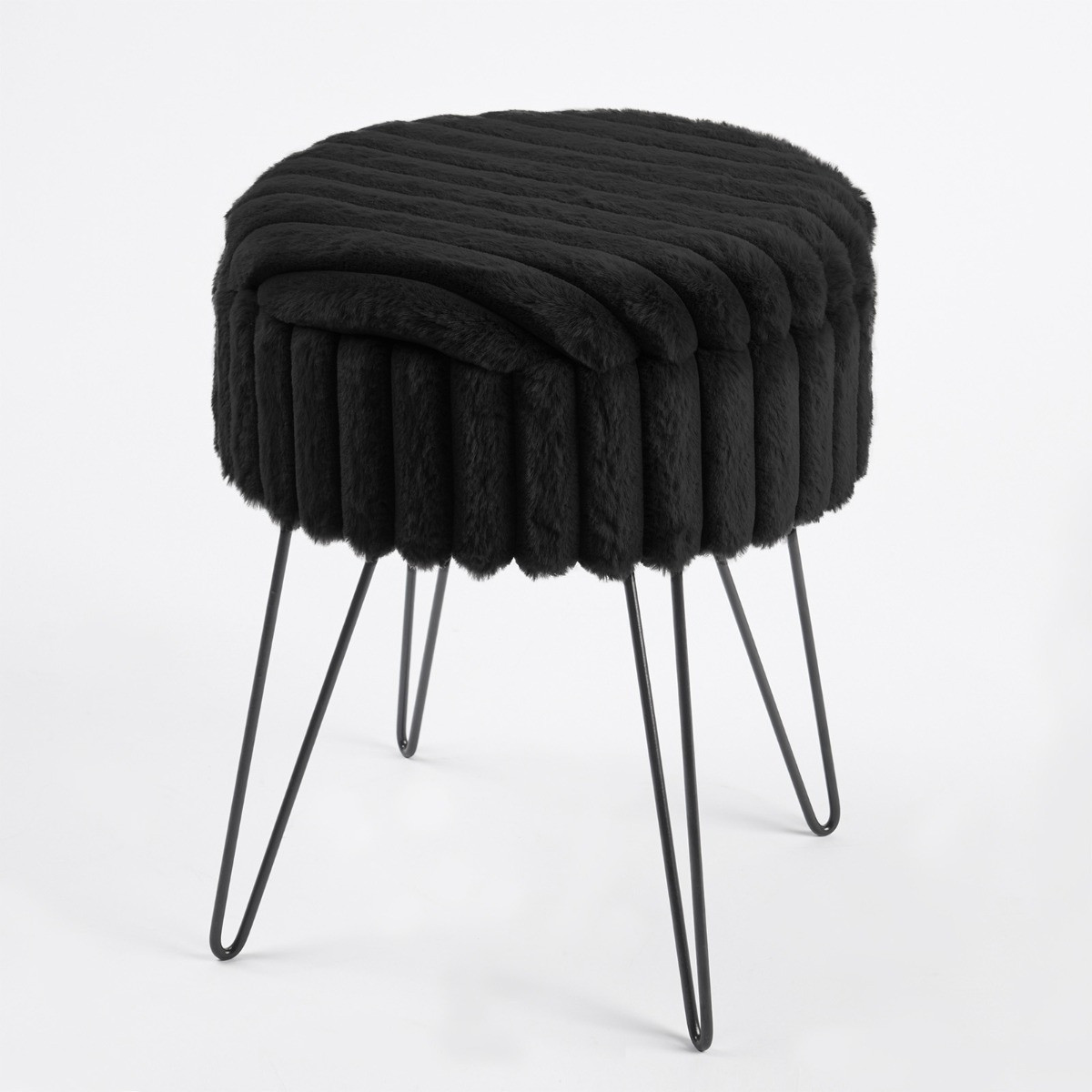 OHS Faux Fur Ribbed Storage Hairpin Stool - Black