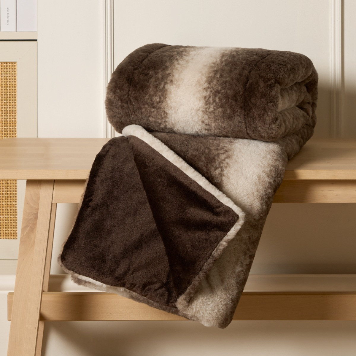 Transform your living space with the OHS Faux Fur Stripe Throw. This cosy throw features a stylish striped pattern emerging from its plush fux fur, designed to bring a bringing a modern and eye-catching touch to any room. Perfect for adding warmth and sophistication, its plush material ensures both comfort and an , elevating elegance look. Ideal for draping over your sofa or bed, this throw seamlessly blends contemporary design with a cosy feel.