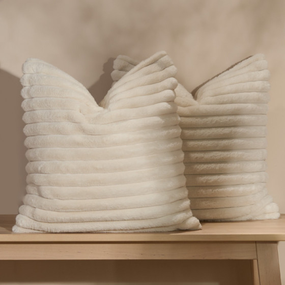 OHS Faux Fur Thick Ribbed Cushion Covers - Natural