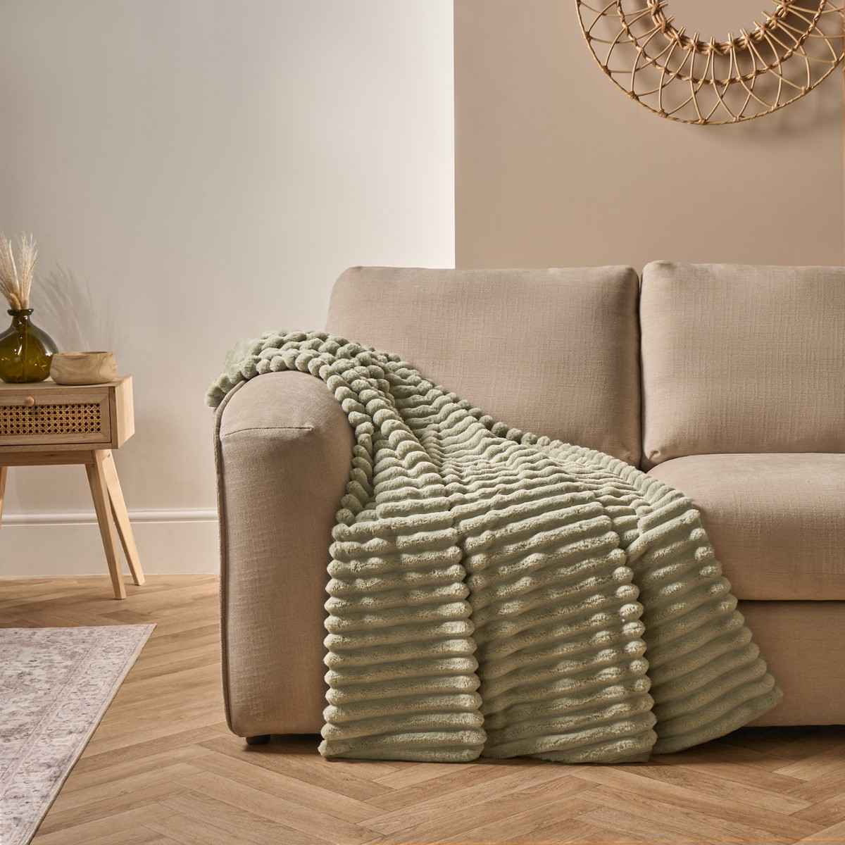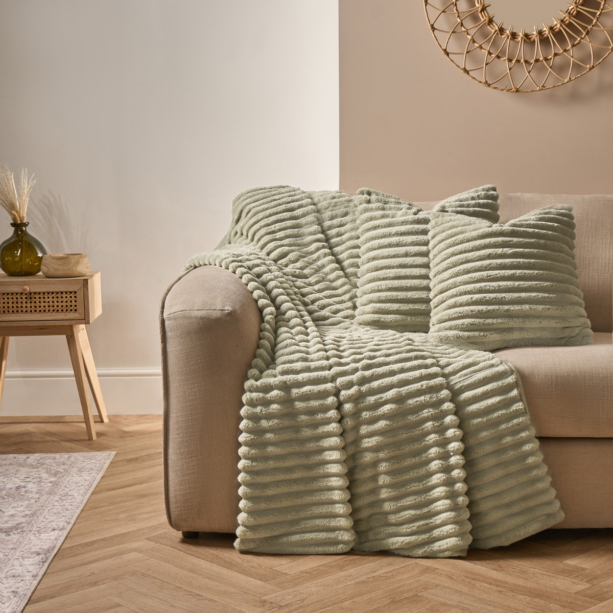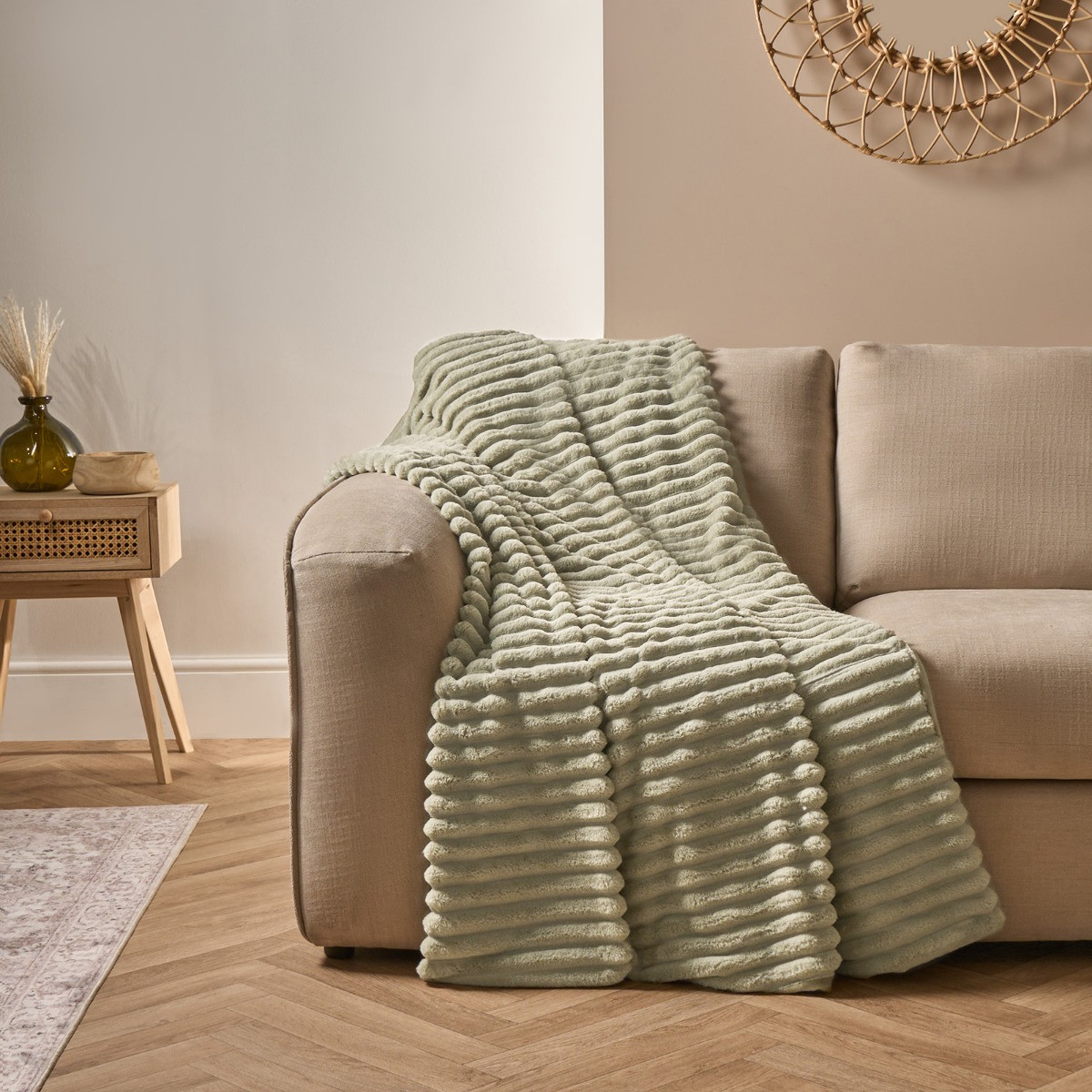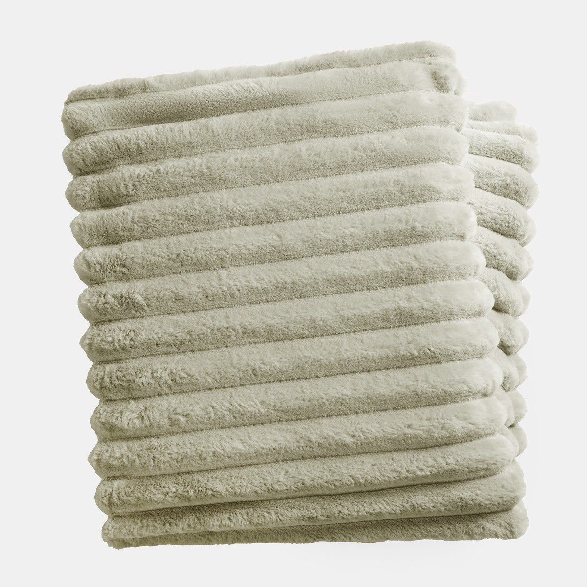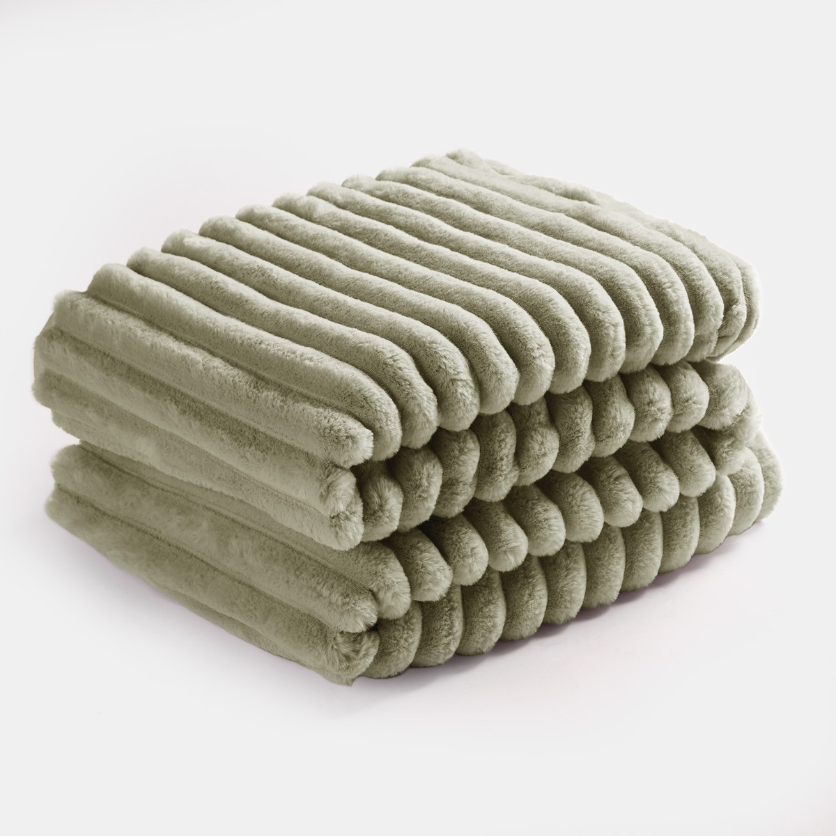 OHS Faux Fur Thick Ribbed Throw - Sage