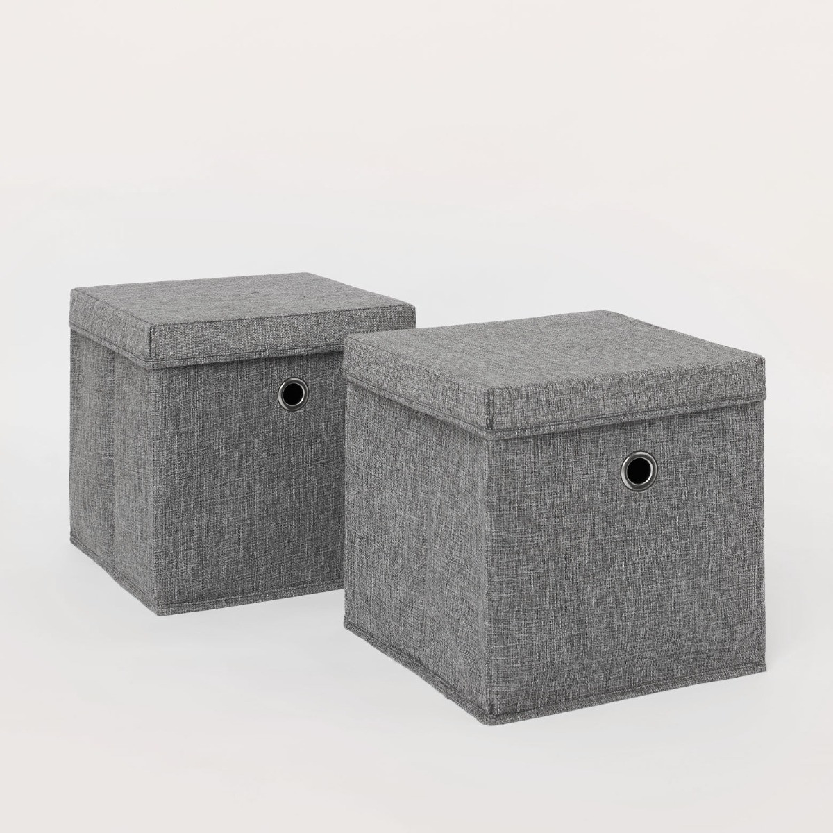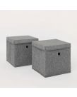 OHS Faux Linen Storage Box With Lid, Charcoal - 2 Pack