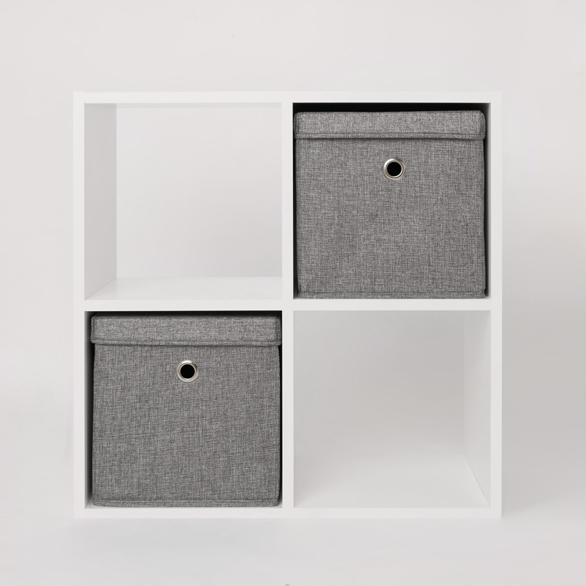 Includes: 2 x Faux Linen Storage Boxes with lids.