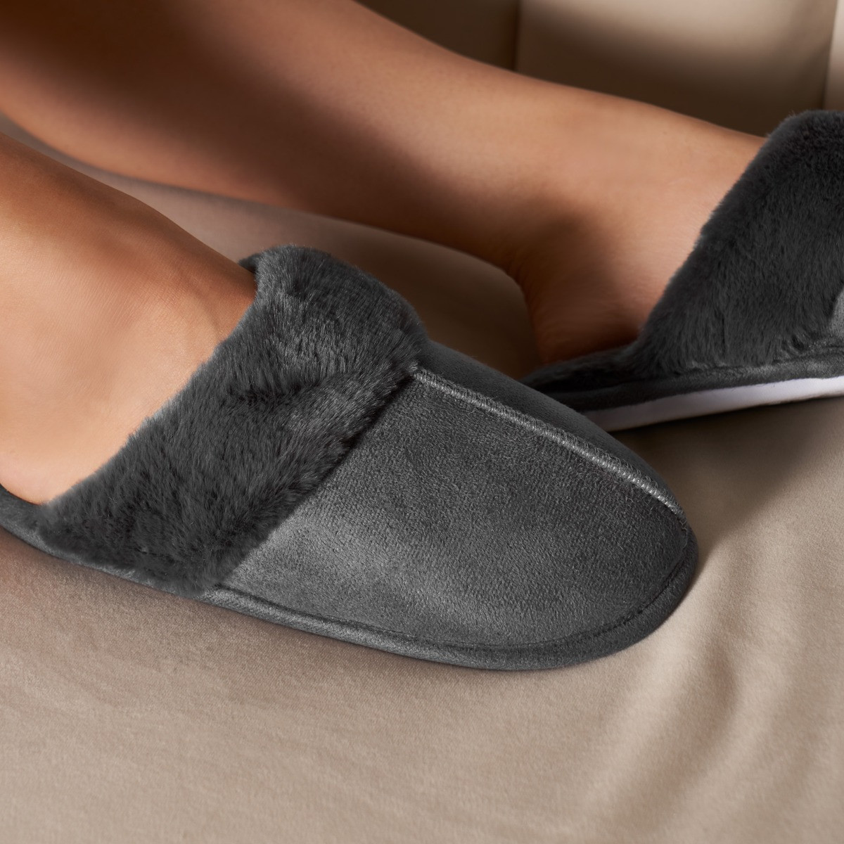 Introducing the OHS Faux Suede Mule Slippers. Elevate your comfort and style with these cosy mule slippers. Crafted from faux suede, they offer a luxurious feel for your feet. Enjoy the combination of comfort and fashion with these versatile faux suede mule slippers, perfect for relaxing moments at home.
