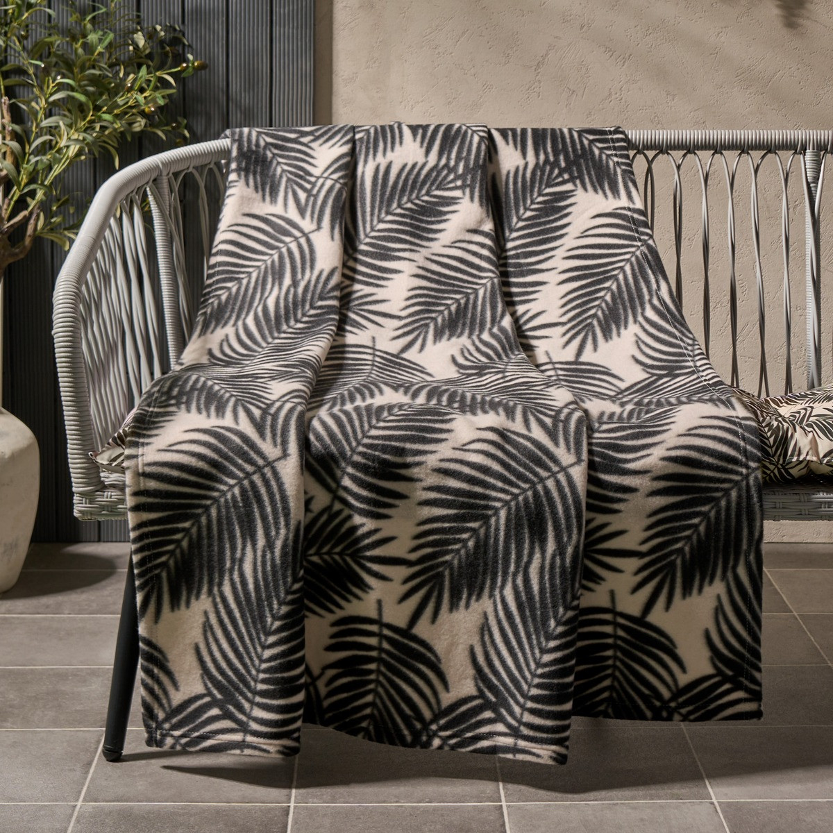 OHS Palm Leaf Print Fleece Throw - Monochrome