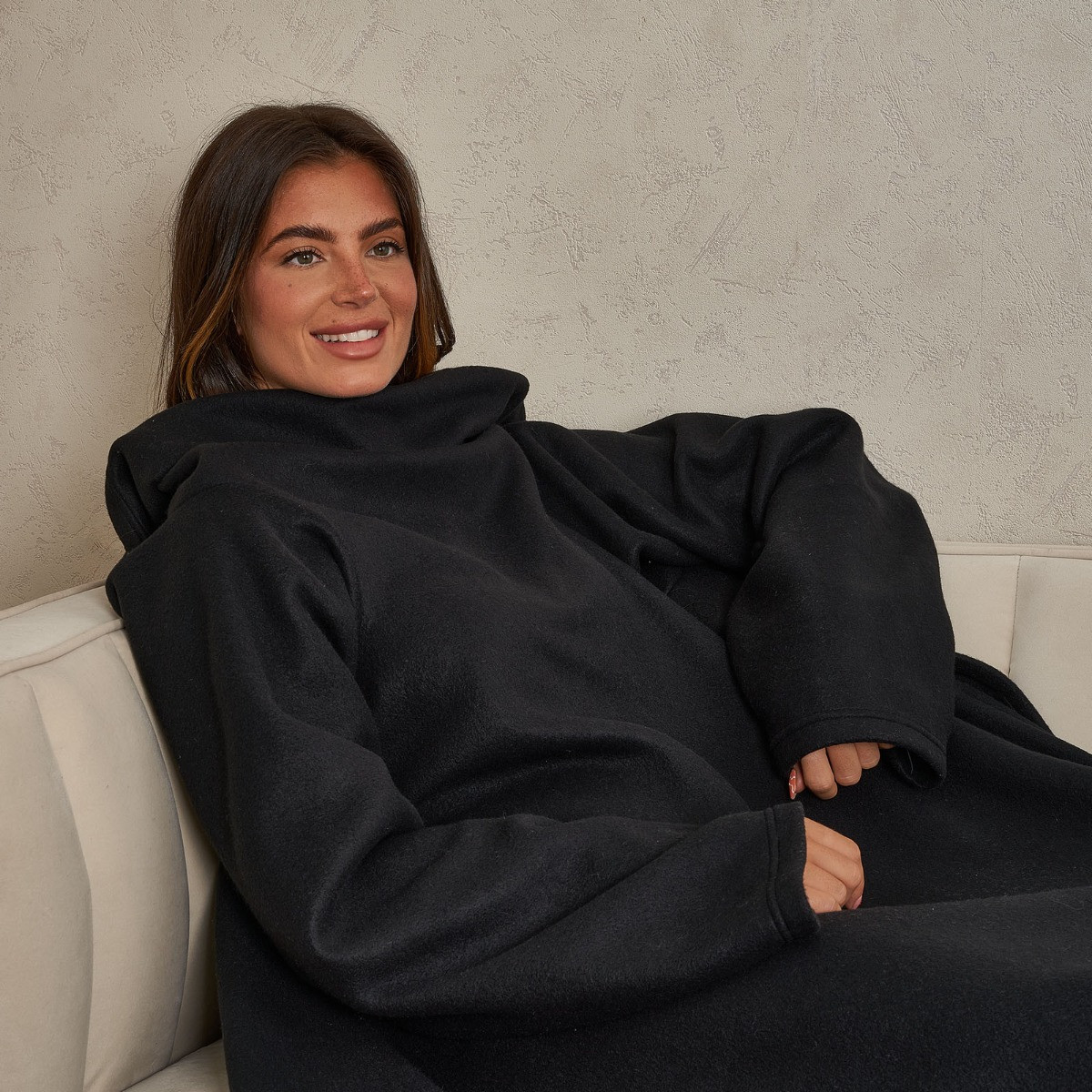 OHS Fleece Wearable Blanket with Sleeves - Black