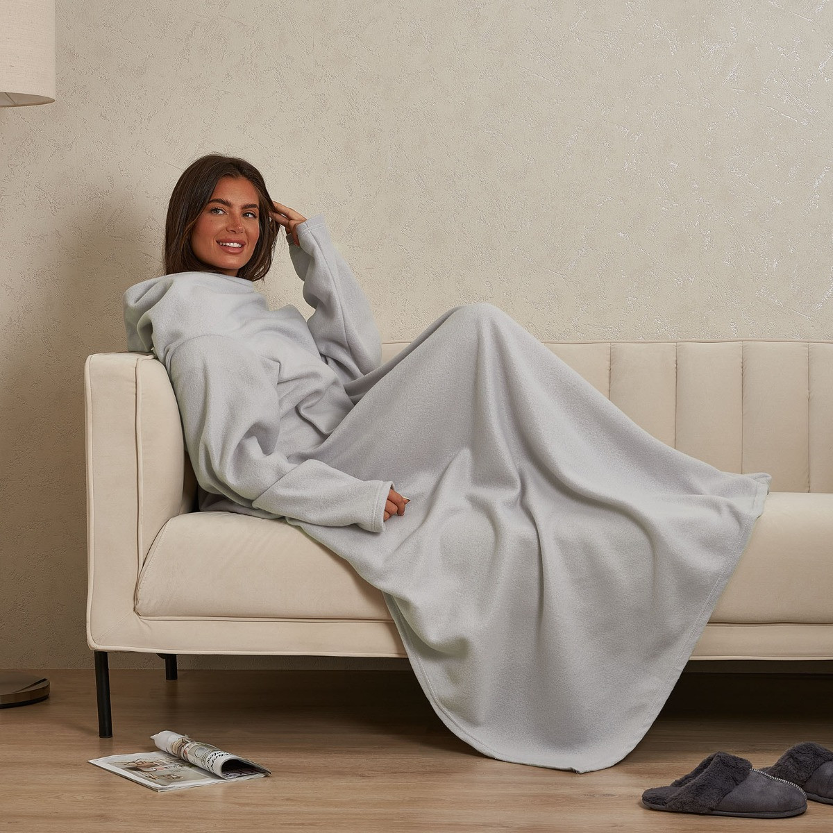 OHS Fleece Wearable Blanket with Sleeves, Silver - 135 x 170cm