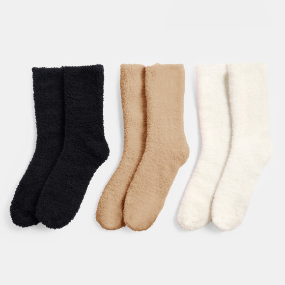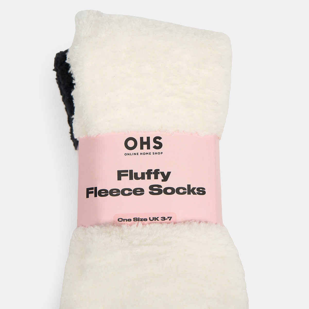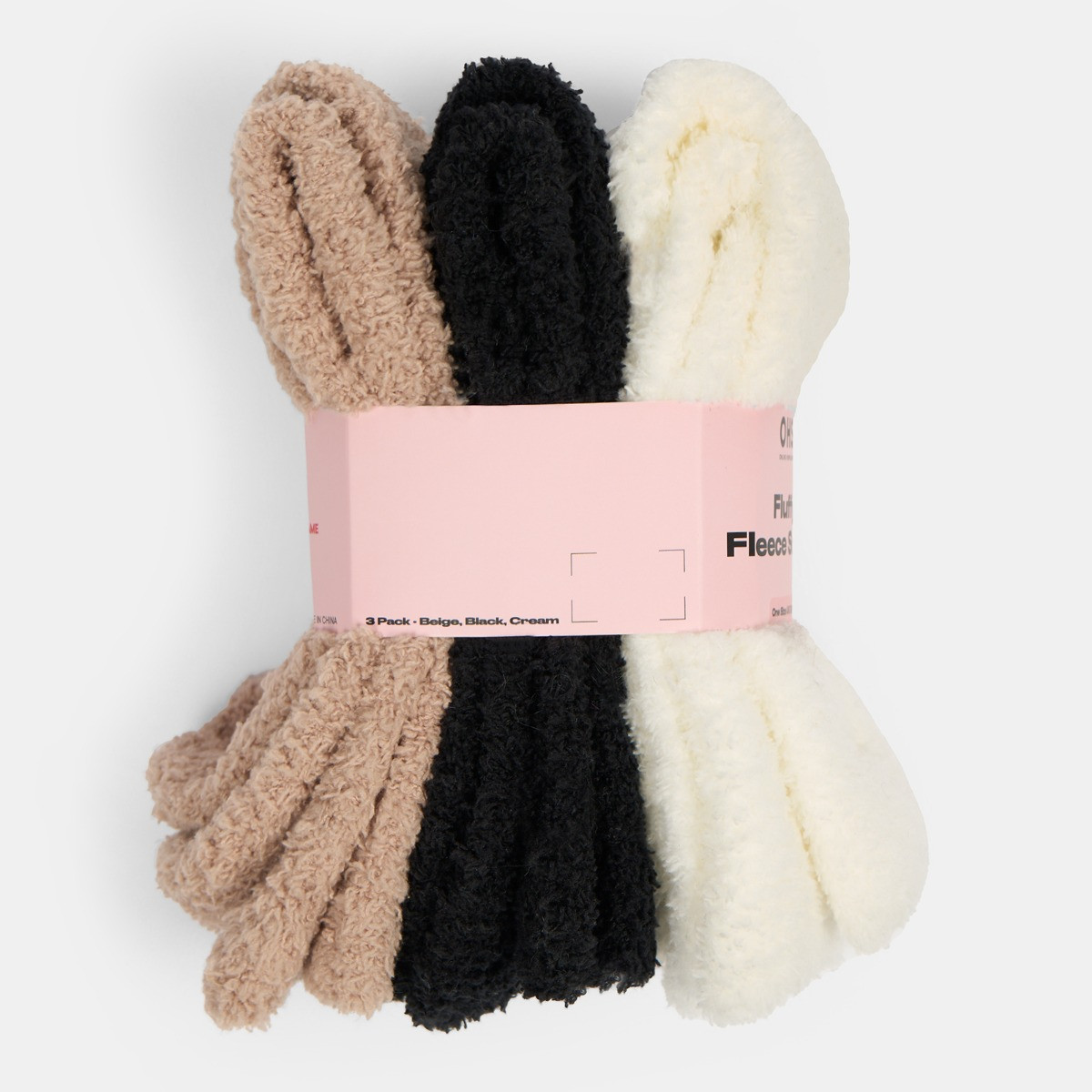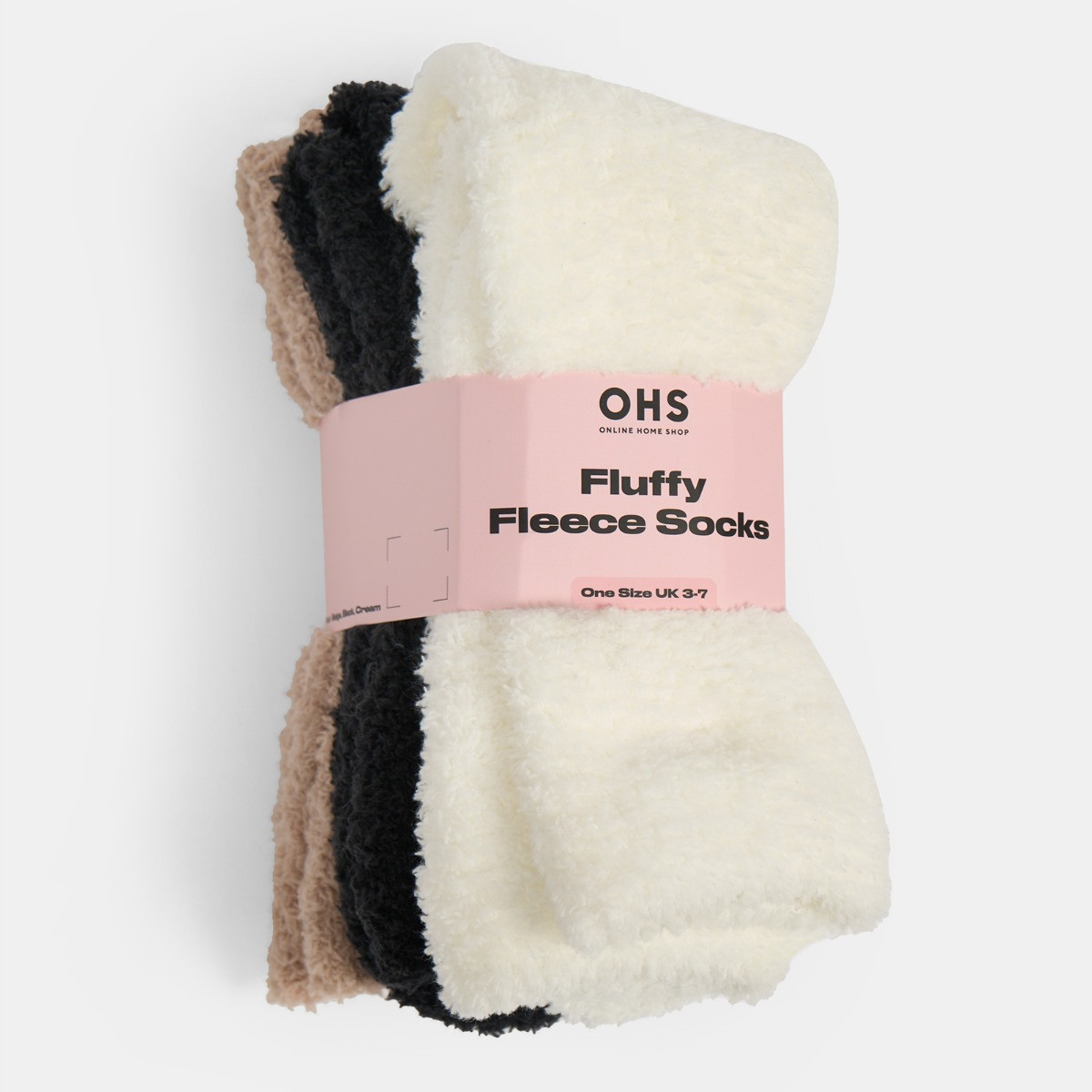 OHS 3 Pack Fluffy Fleece Socks - Beige Black Cream