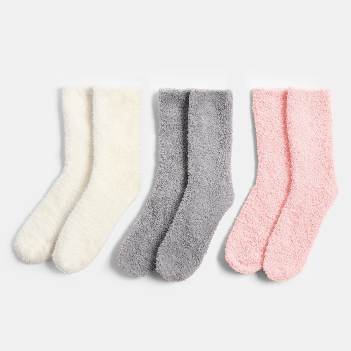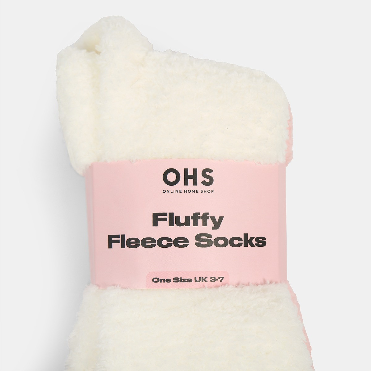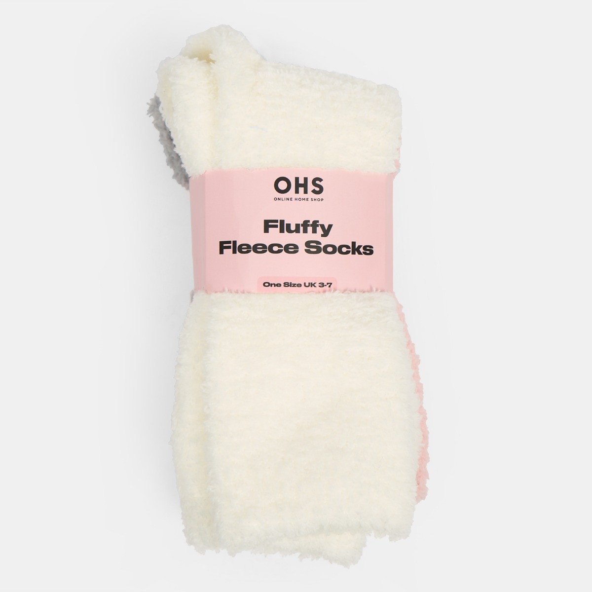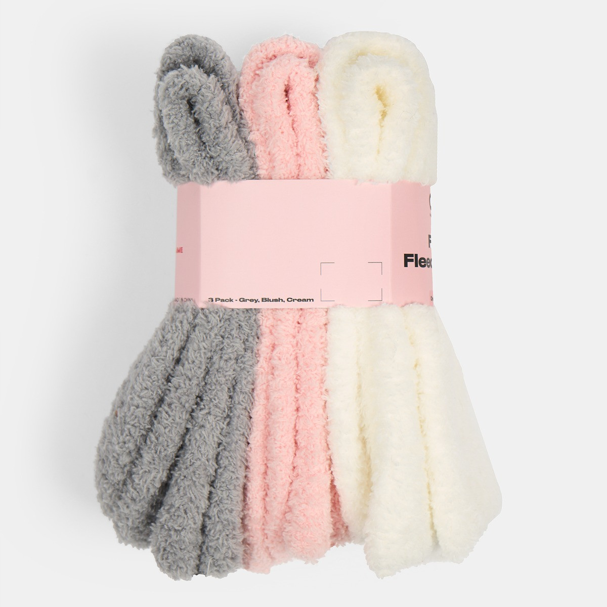 OHS 3 Pack Fluffy Fleece Socks - Grey Blush Cream