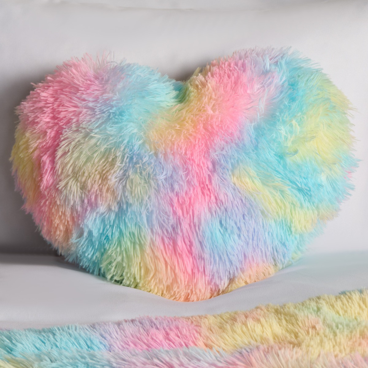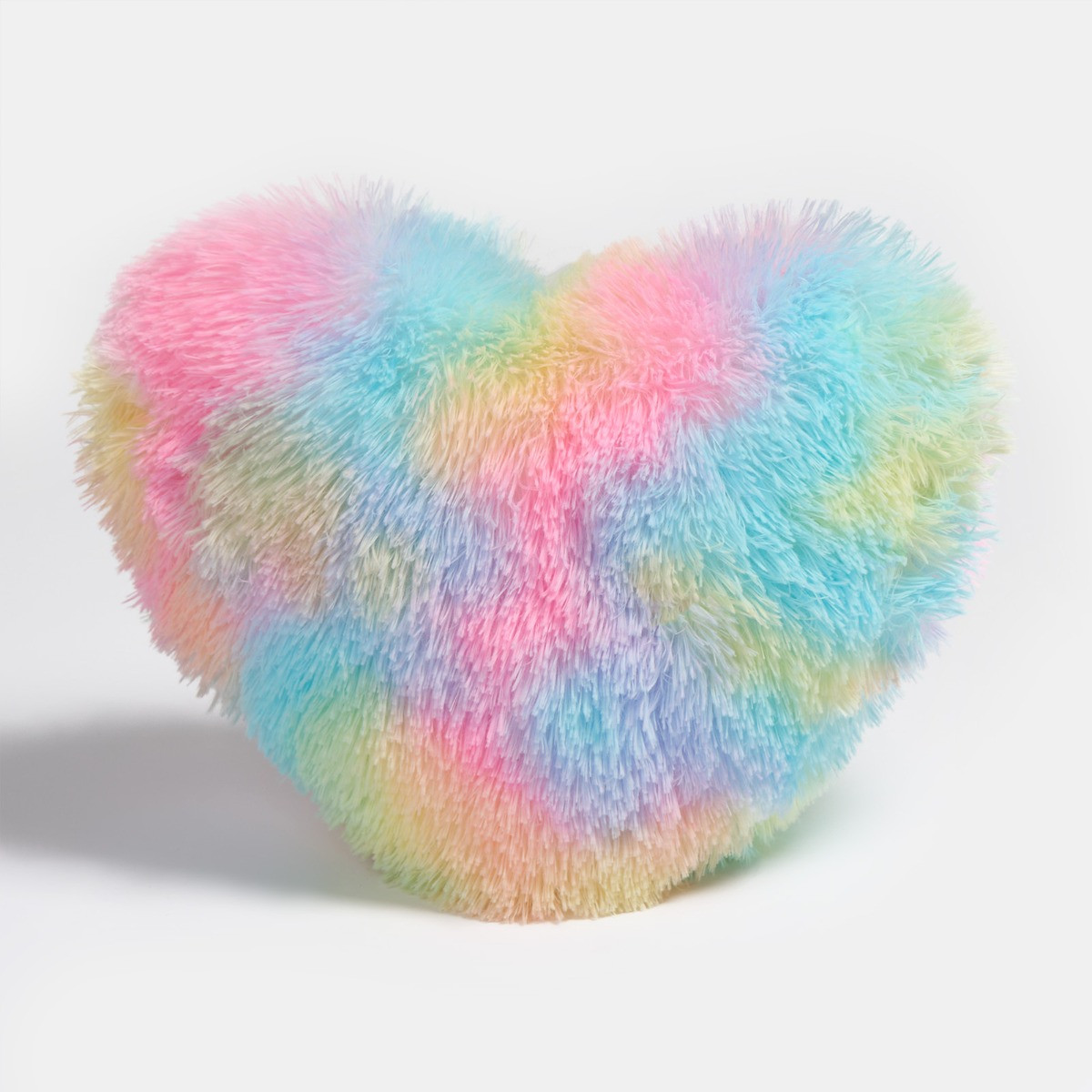 OHS Fluffy Tie Dye Heart Shaped Filled Cushion - Multi