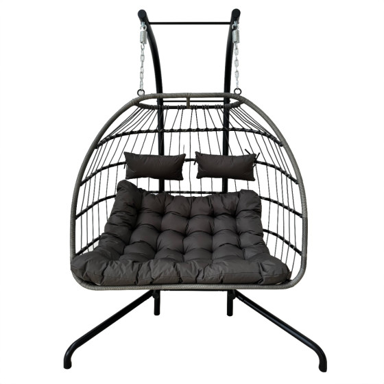 OHS Foldable Rattan Double Hanging Egg Chair - Grey