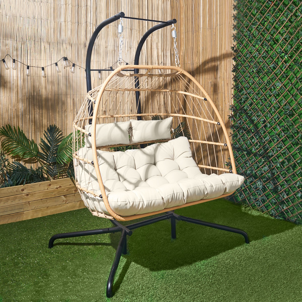 Your ViewingOHS Foldable Rattan Double Hanging Egg Chair - Natural