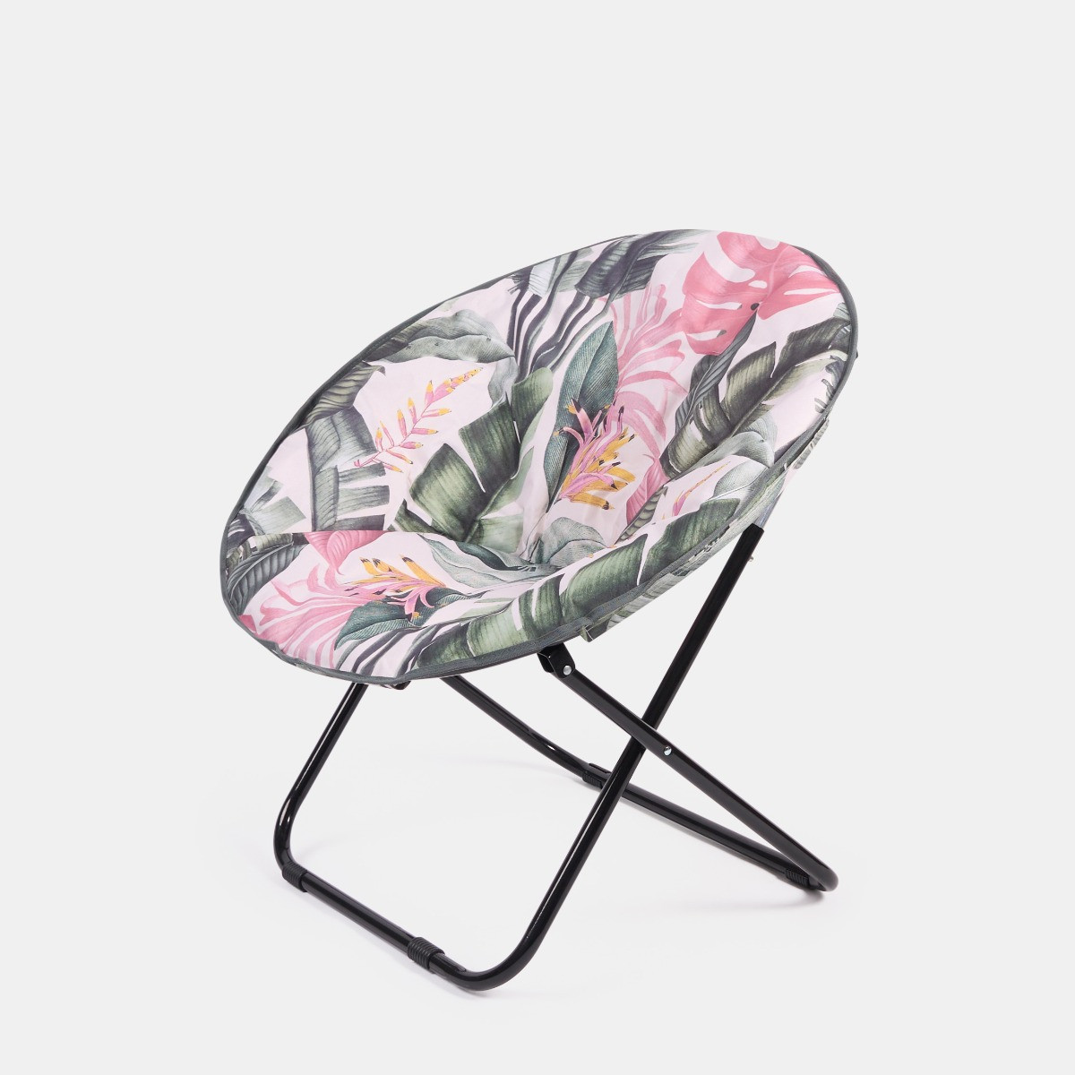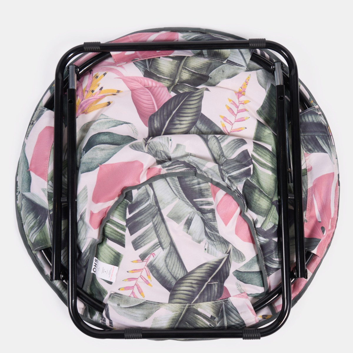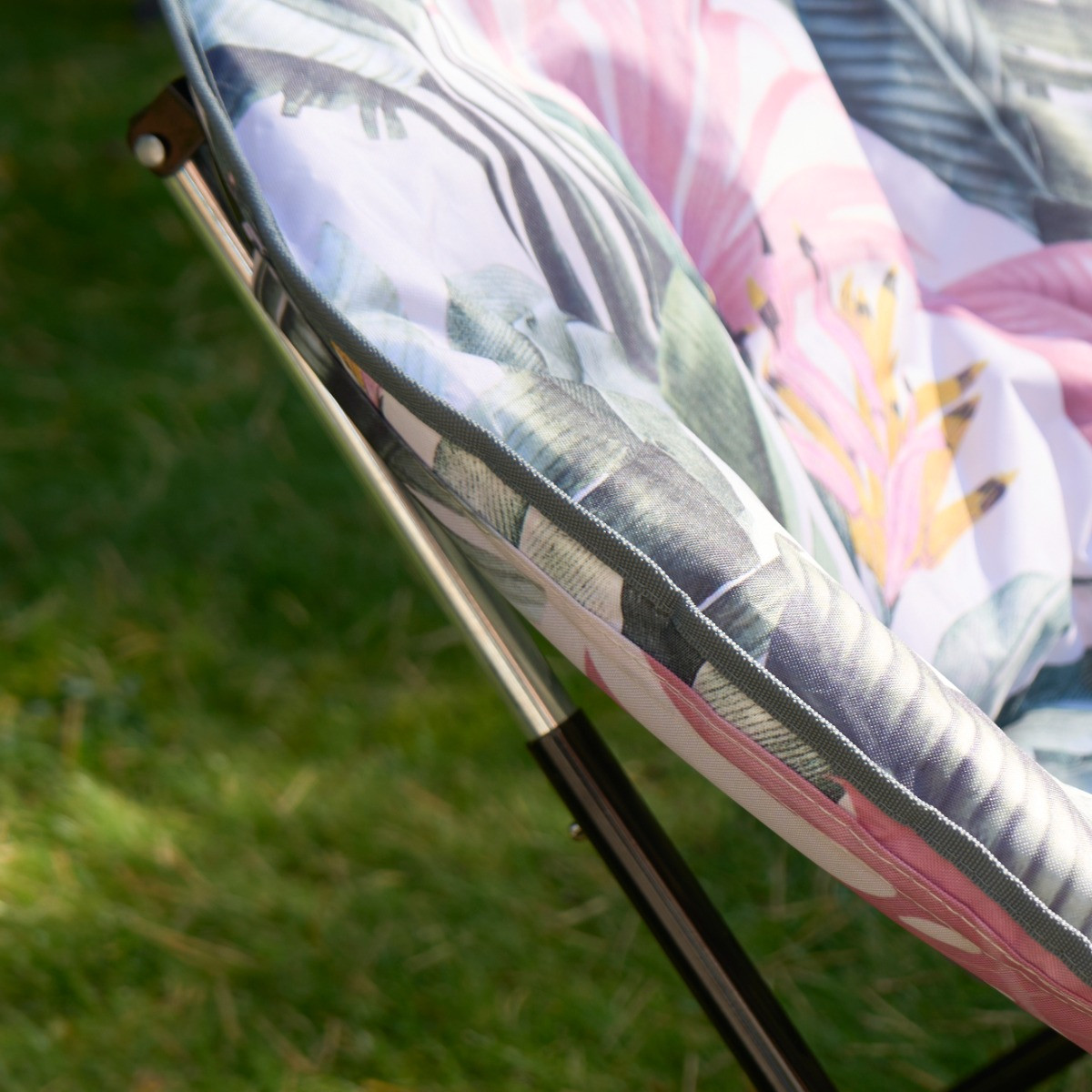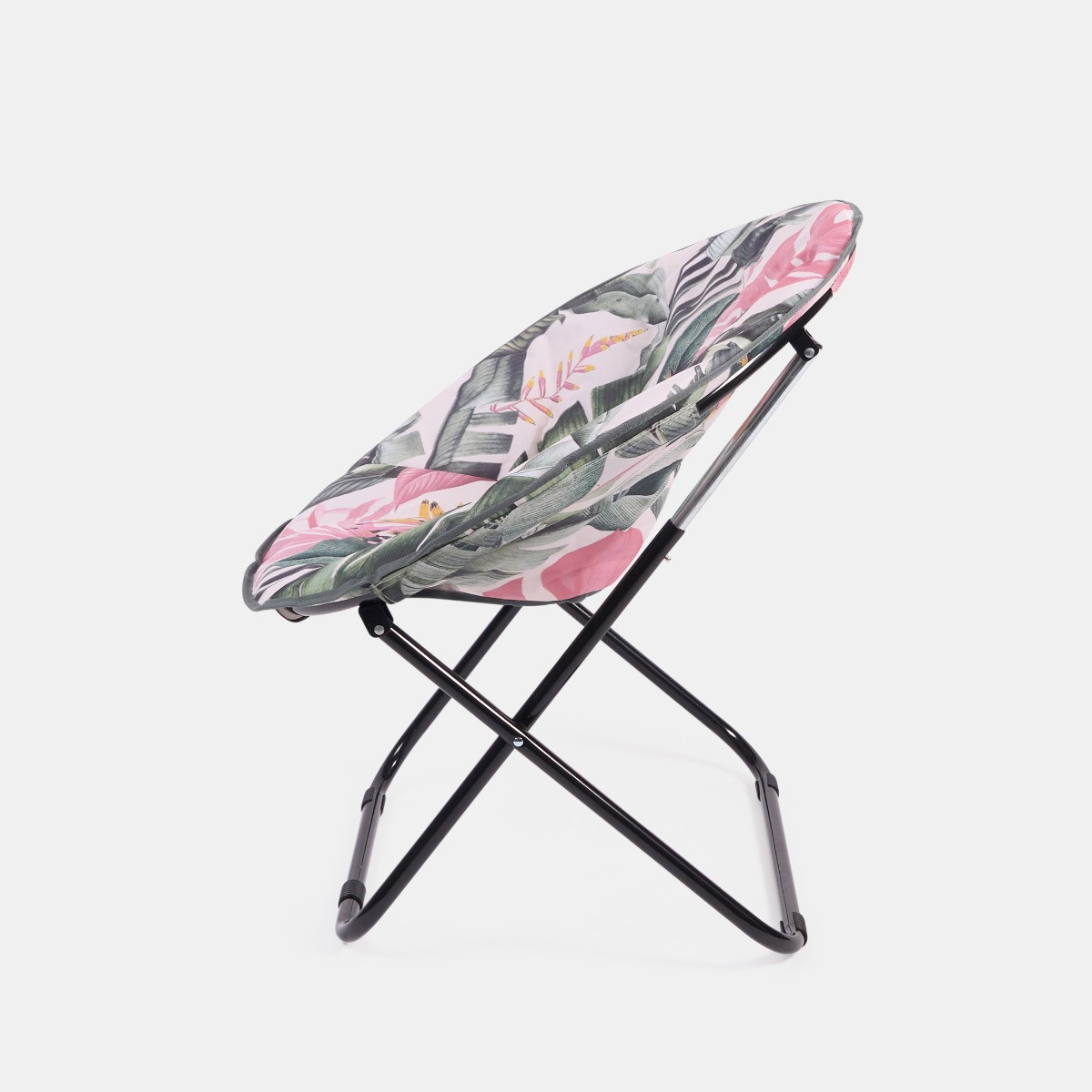 OHS Foldable Tropical Print Moon Camping Chair - Green