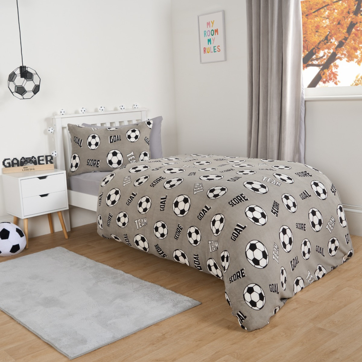 OHS Football Fleece Duvet Set, Grey - Single
