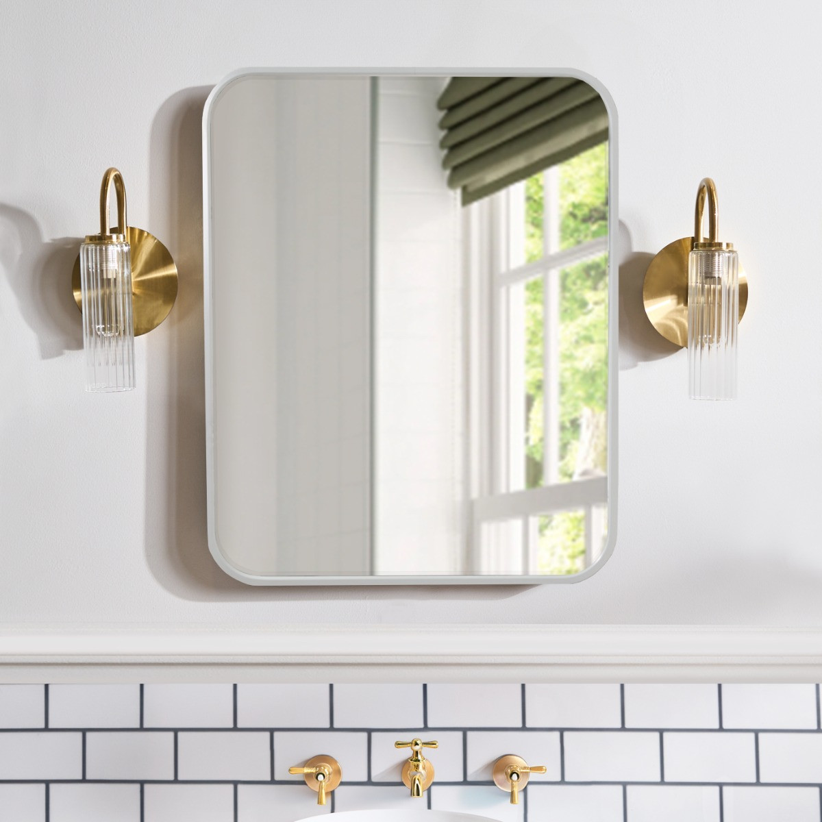 OHS Framed Bathroom Wall Vanity Mirror - White