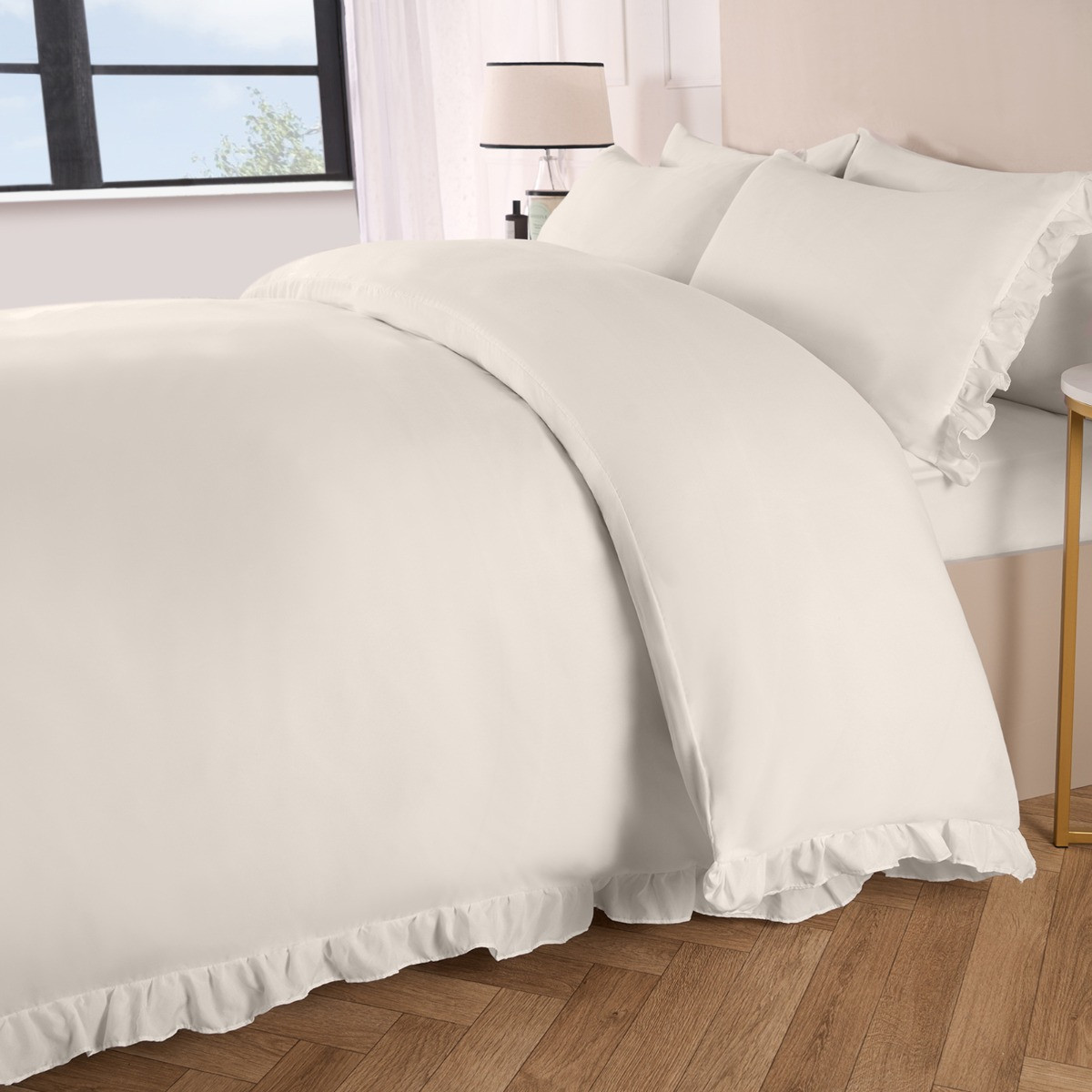 Bring a playful yet elegant touch to your bedroom with the OHS Frill Edge Duvet Cover Set. Featuring a charming ruffled edge on both the duvet and pillowcases, this set draws the eye and adds a soft, feminine flair to your space. Crafted from soft, breathable fabric, it combines style and comfort, creating a cosy and inviting atmosphere. Perfect for those who love subtle details with a touch of flair, this duvet cover set is a beautiful addition to any bedroom.