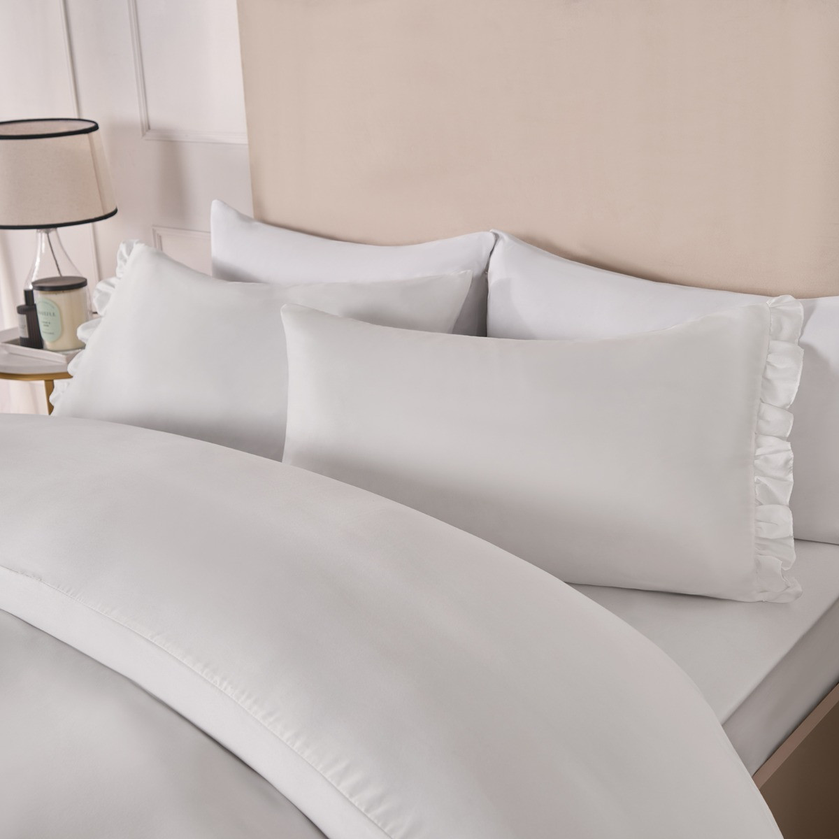 OHS Frill Edge Duvet Cover Set, White - King