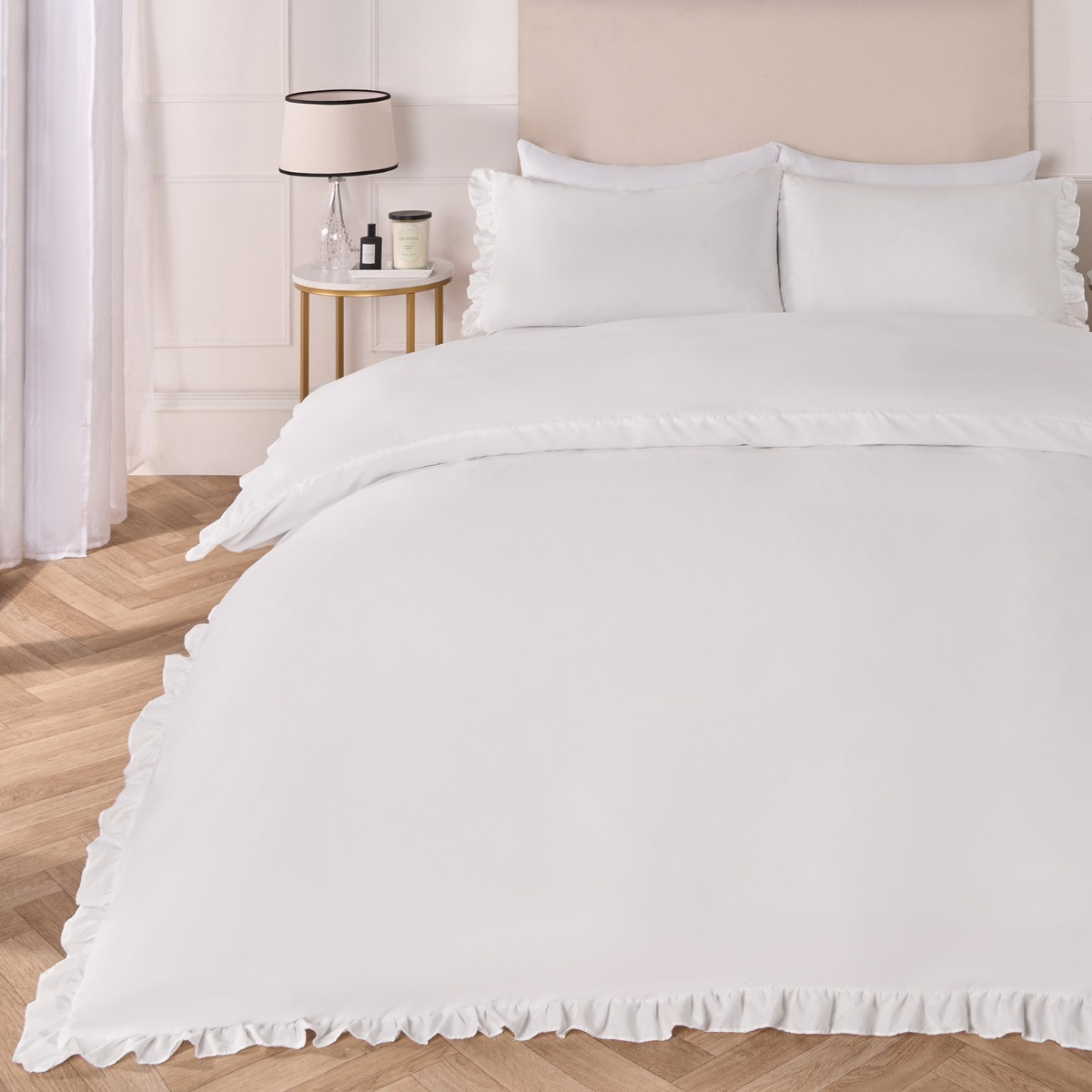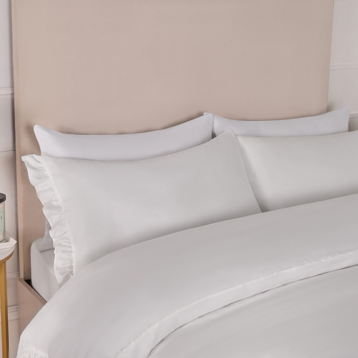 Bring a playful yet elegant touch to your bedroom with the OHS Frill Edge Duvet Cover Set. Featuring a charming ruffled edge on both the duvet and pillowcases, this set draws the eye and adds a soft, feminine flair to your space. Crafted from soft, breathable fabric, it combines style and comfort, creating a cosy and inviting atmosphere. Perfect for those who love subtle details with a touch of flair, this duvet cover set is a beautiful addition to any bedroom.