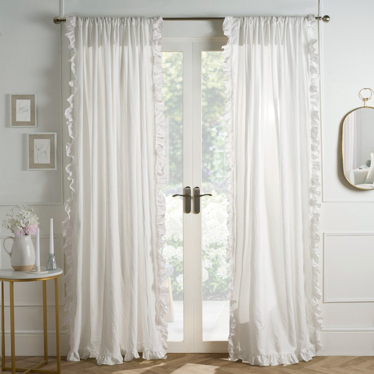 Add a touch of elegance and charm to any room with the OHS Frill Voile Curtains. Featuring a delicate frill trim along the edges, these voile curtains offer a soft, romantic feel while allowing gentle light to filter through. Perfect for creating an airy, sophisticated atmosphere, the slot top design makes hanging effortless, ensuring a graceful drape in any space.