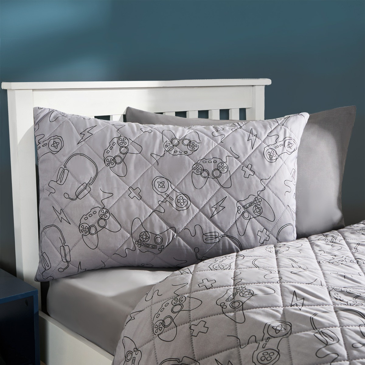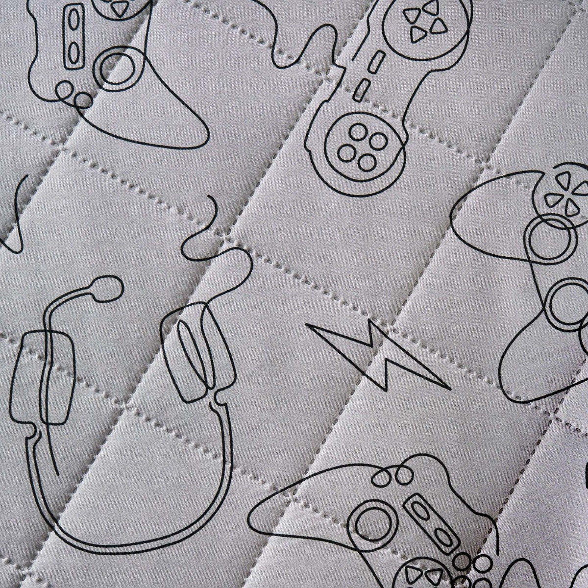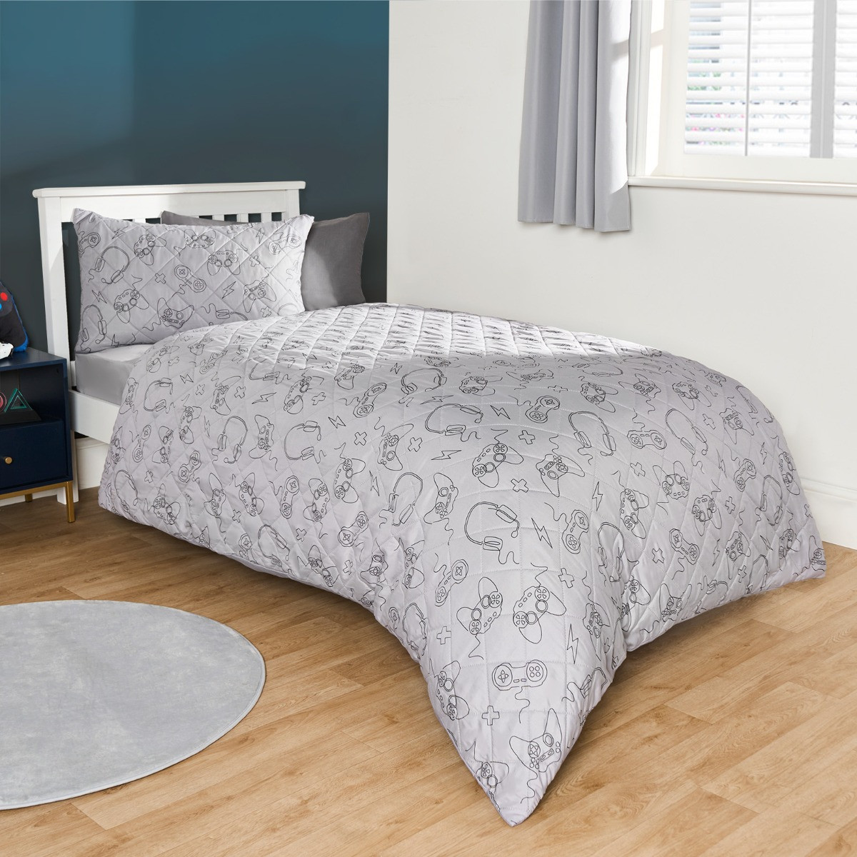 OHS Gaming Print Quilted Duvet Cover Set - Grey