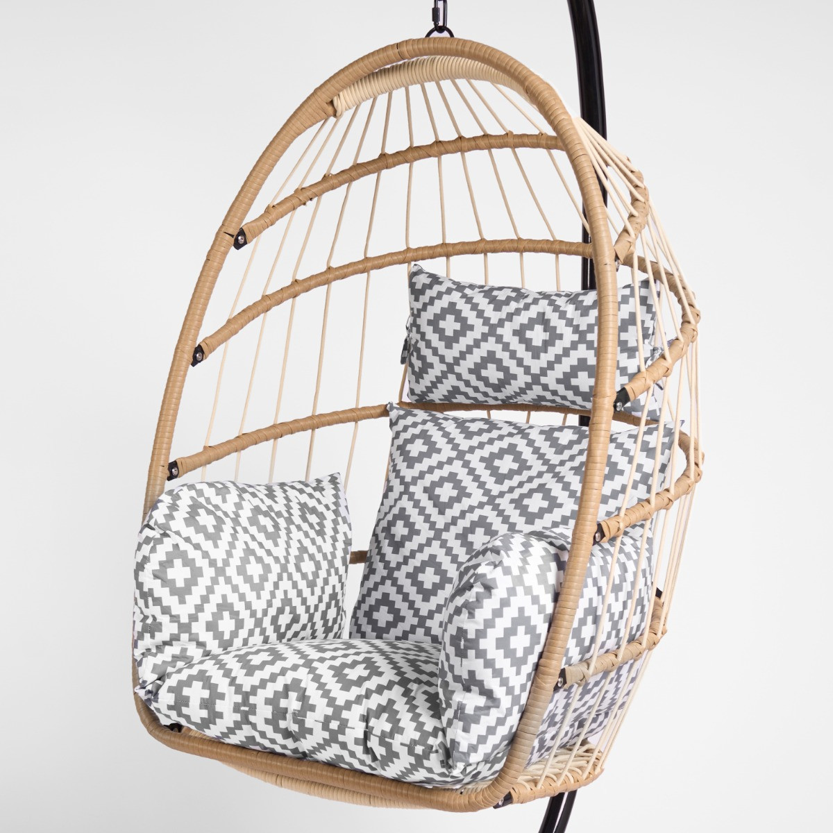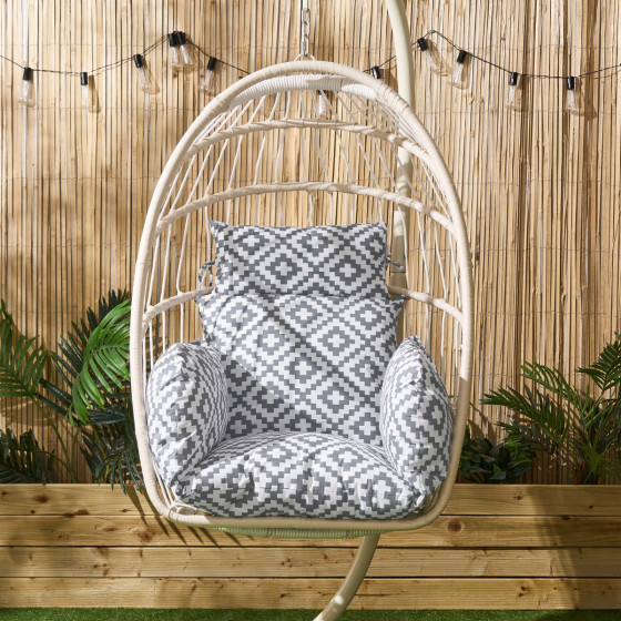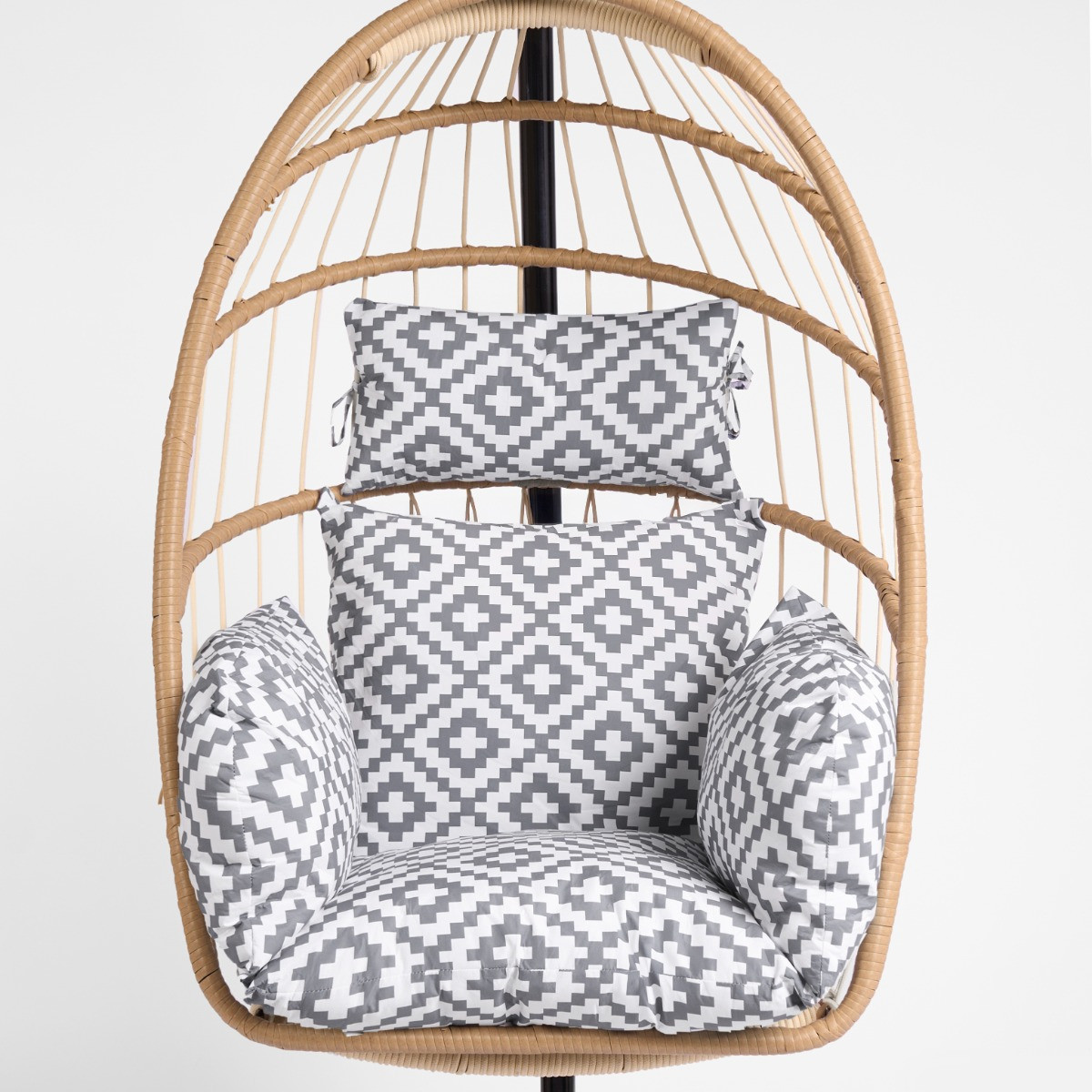 The OHS Geometric Egg Chair Cushion with Headrest in a stylish design offers ultimate comfort and support for your egg chair. The plush padding ensures a soft, relaxing seating experience, while the geometric pattern adds a modern touch to your indoor or outdoor space. Designed to fit perfectly with our OHS Foldable Hanging Egg Chair (and most other egg chairs), this cushion also includes a headrest for added comfort. For longevity, store the cushion in a dry, indoor place when not in use.